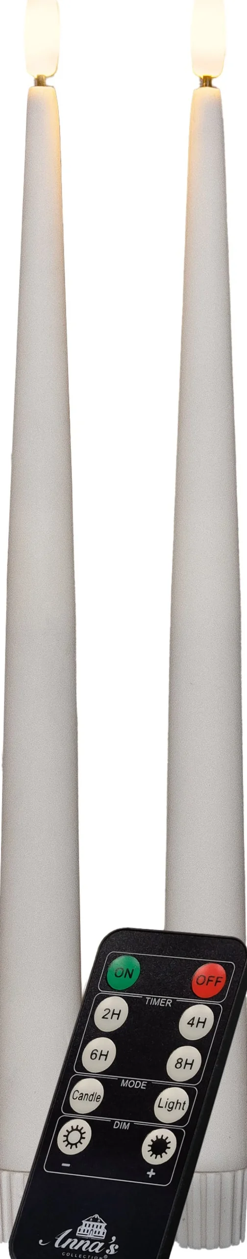 Die Anna’s Collection LED Stabkerzen Mino Weiß D 3 H 30 cm 2 Stück bringen die gemütliche Atmosphäre echter Kerzen auf deinen Weihnachtstisch, aber ganz ohne Risiko. Diese zwei eleganten weißen Dinnerkerzen haben eine sanft bewegende LED-Flamme, die kaum von einer echten zu unterscheiden ist. Mit einer Länge von 30 cm und einer glatten, geraden Form passen diese Kerzen perfekt in klassische Kerzenhalter und schaffen während des Weihnachtsessens einen warmen, stimmungsvollen Schein. Dank der mitgelieferten Fernbedienung kannst du das Licht bequem von deinem Platz am Tisch steuern.