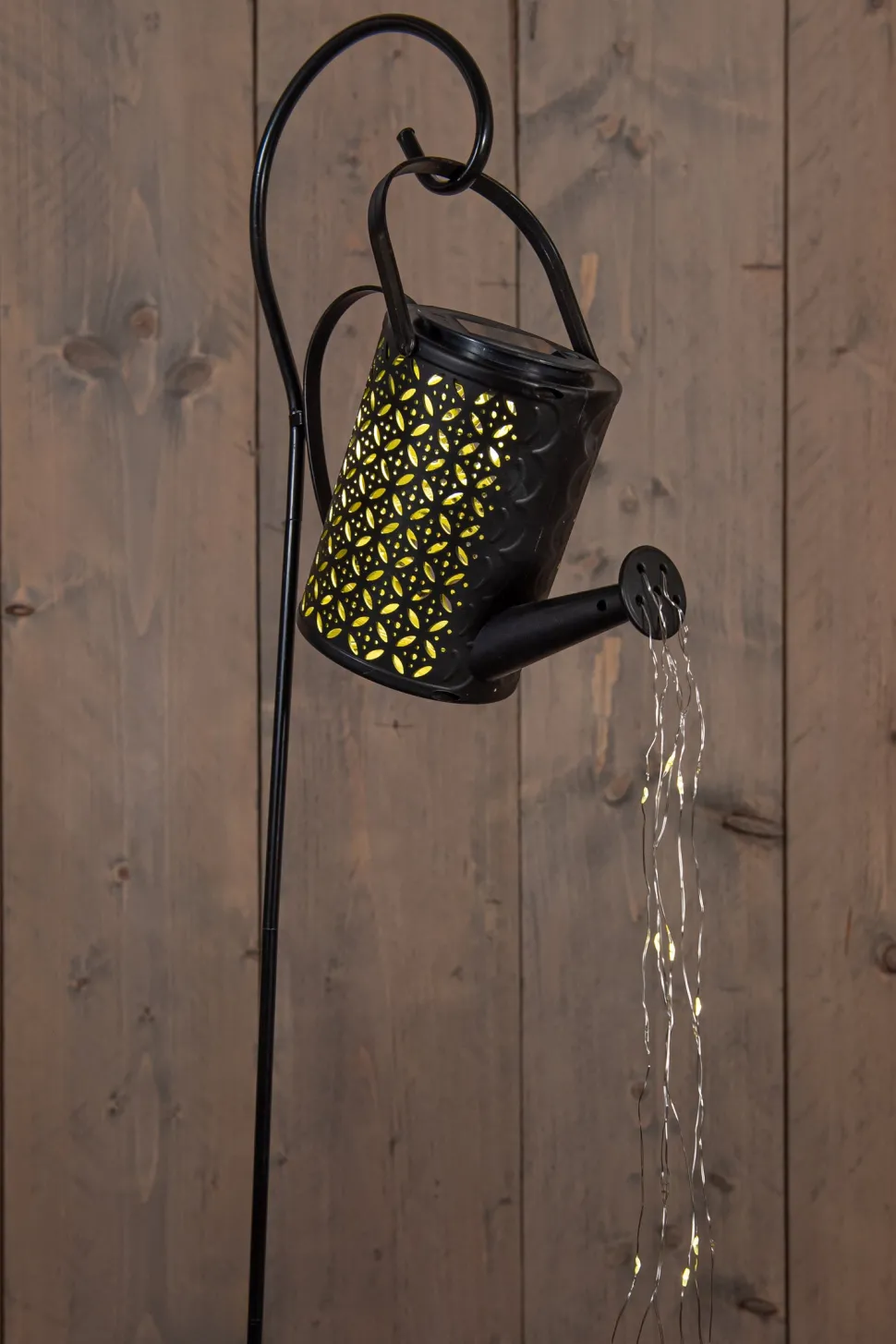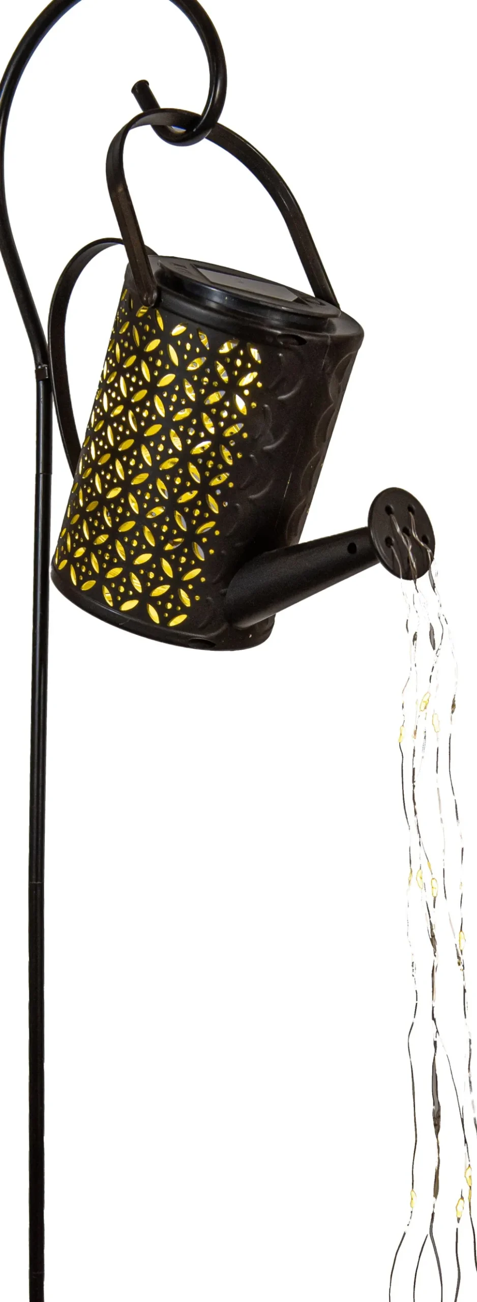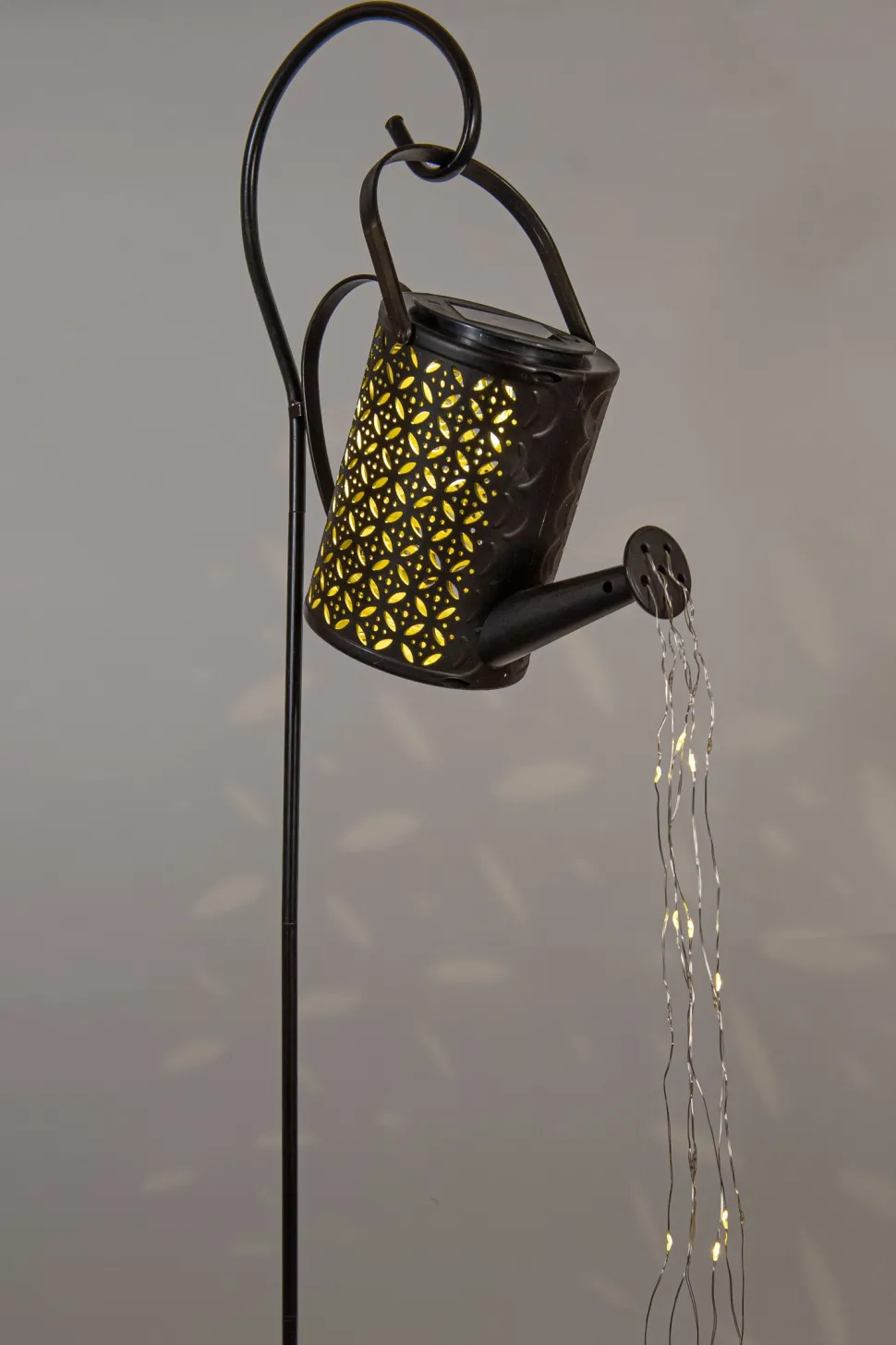 Die Gießkanne hat eine elegante schwarze Farbe (23,5 x 10 x 15 cm) und steht fest auf einem Stab, sodass sie leicht in Rabatten, Blumentöpfen oder entlang von Gartenwegen platziert werden kann. Aus wetterfesten Materialien gefertigt, ist diese Solarleuchte nicht nur dekorativ, sondern auch praktisch für jede Jahreszeit