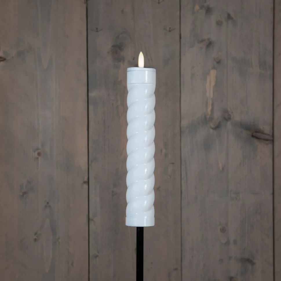 Die Solarfackel Swirl von Anna’s Collection mit 3D-Docht und in der Farbe Weiß kombiniert modernes Design mit langlebiger Beleuchtung. Mit einem Durchmesser von 4 cm und einer Höhe von 21 cm, auf einem 76 cm hohen Pfahl, verbreitet diese Fackel ein stimmungsvolles Licht.
