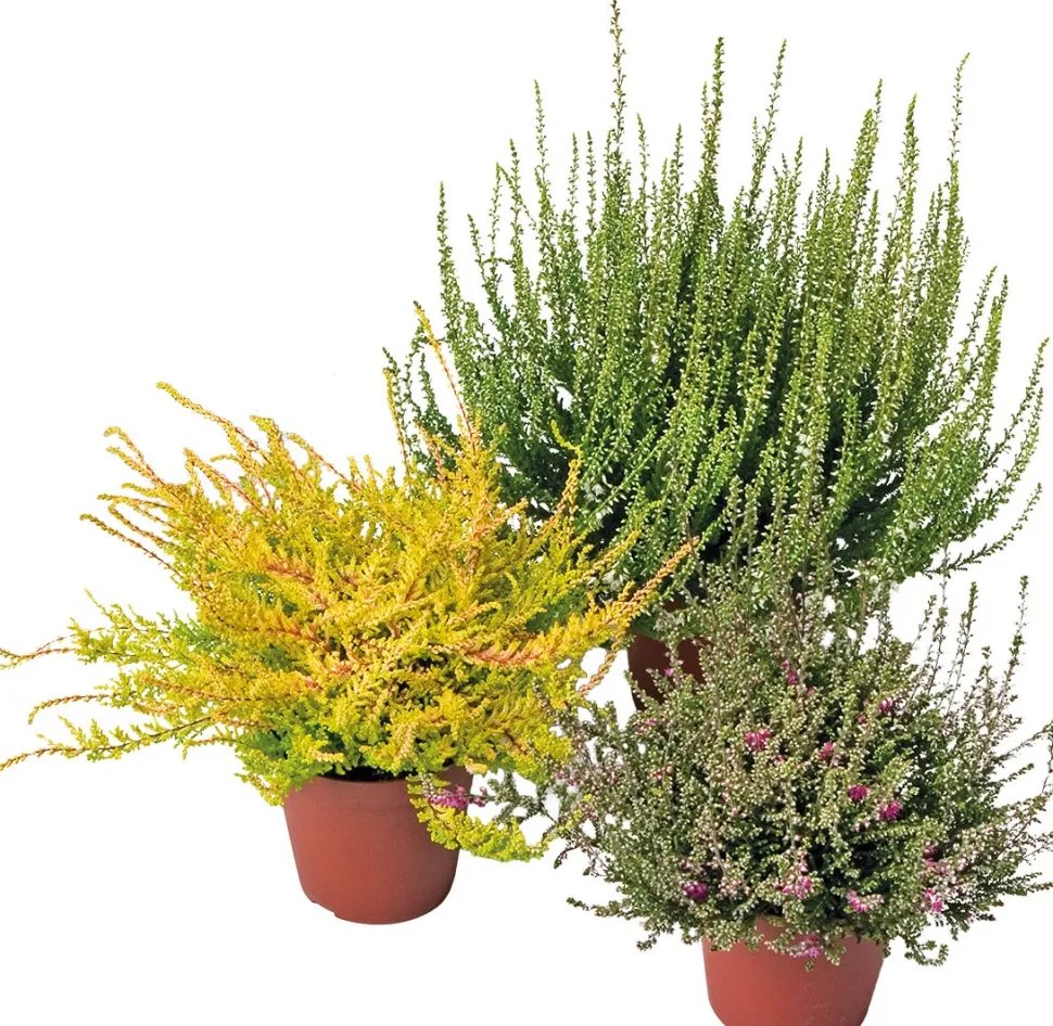 Bei dieser speziellen Besenheide-Sorte ‚Garden Girls‘ öffnen sich die Blütenknospen nicht vollständig; die Knospen selbst sorgen für die Farbenpracht im Herbst. Dadurch hält die Blüte dieser Besenheide länger an und kannst du auch noch in den Wintermonaten die Farbenpracht in deinem Garten genießen. Die verschiedenen Farben der Heidekraut-Pflanzen lassen sich auch gut miteinander kombinieren.