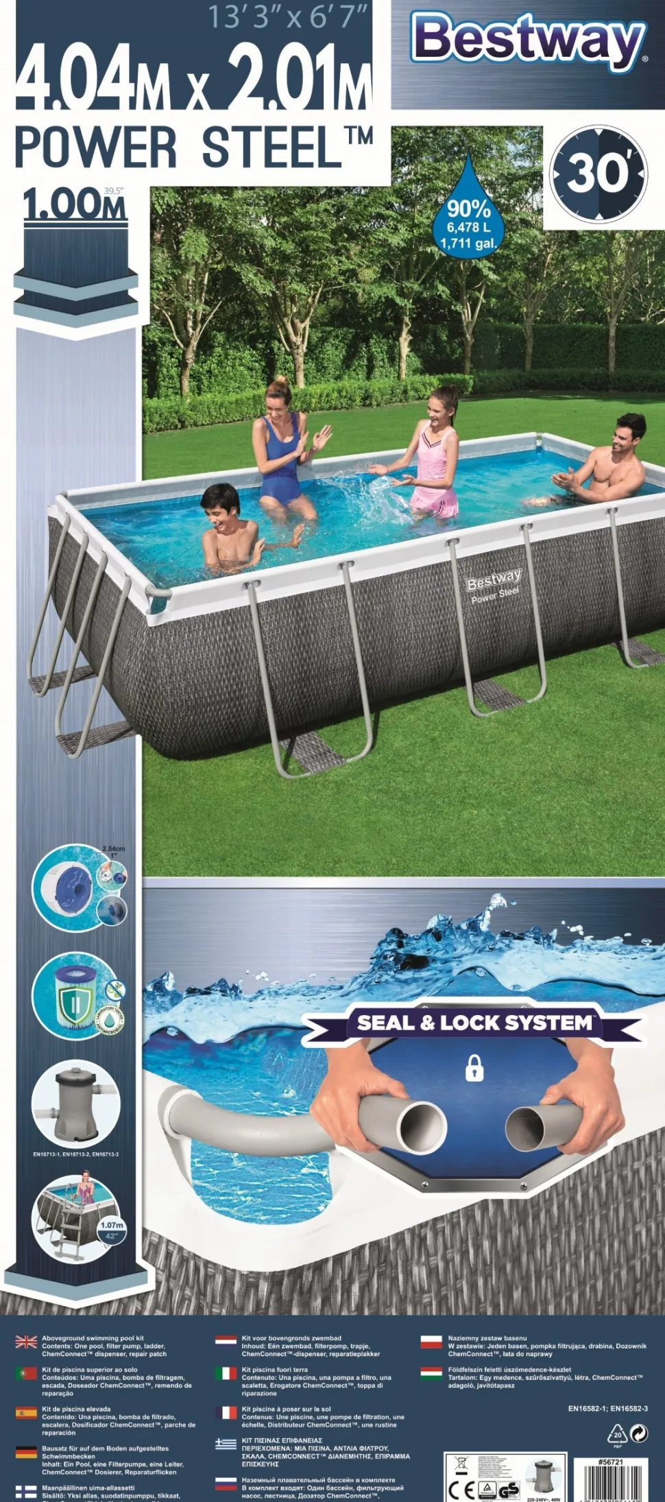| Weitere Information | Inklusive Filterpumpe, Stufen, Chemconnect und Reparaturpflaster |