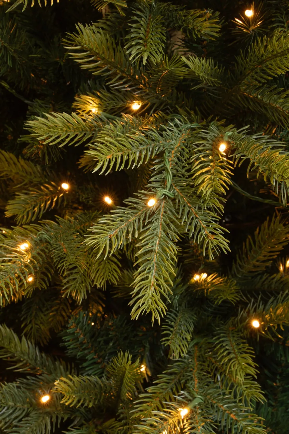 Entdecke den winterlichen Charme des künstlichen Weihnachtsbaums Grand Fir mit LED-Beleuchtung von Black Box Trees. Dieser wunderschöne Weihnachtsbaum ist grün und besticht durch Qualität und Authentizität. Denn die äußeren Äste sind aus PE für einen realistischen Look und die inneren Äste haben weiche PVC-Nadeln für einen vollen Look.