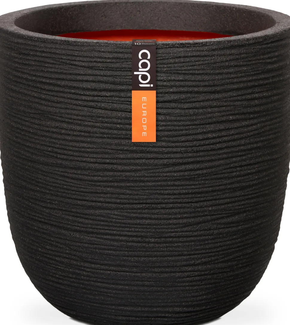 Die Capi Nature Rib Pflanzgefäße werden nachhaltig in den Niederlanden produziert und haben durch die geriffelte Oberfläche eine besondere Ausstrahlung. Das Design ist inspiriert von ursprünglichen Strukturen aus der Natur wie geflochtenen Ästen oder Schilf und wird in ein modernes Material übersetzt. Die Blumentöpfe und Pflanzkübel haben eine einzigartige doppelte Isolierschicht, die die Pflanze vor Hitze im Sommer und Frost im Winter schützt. Darüber hinaus verfügt der Pflanzkübel über folgende Produkteigenschaften: