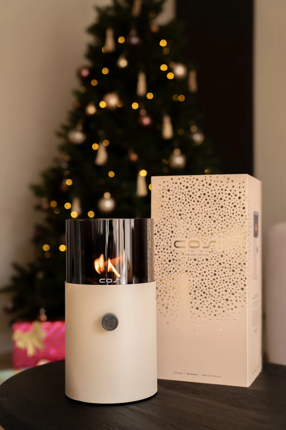 Die Cosiscoop-Tischkamine sind einfach zu bedienen und werden mit einer 190-Gramm-Gaskartusche betrieben. Schraube die Kartusche unten in die Laterne, öffne den Drehknopf und zünde die Laterne mit einem langen Feuerzeug an. Mit einer Kartusche brennt die Cosiscoop 5 bis 6 Stunden lang. So kannst du viele Abende lang die Cosiscoop genießen.