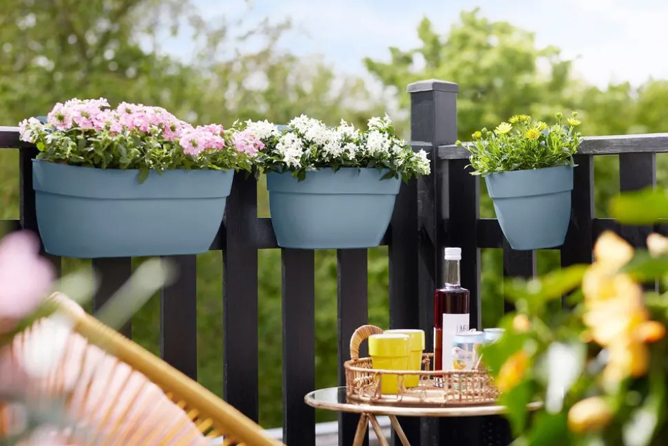 Dieser blaue Vibia-Balkonkasten aus der Elho-Kollektion ist eine echte Bereicherung für deinen Balkon. Der aus recyceltem Kunststoff hergestellte Balkonkasten hat eine rechteckige Form, ist sehr stilvoll und eignet sich hervorragend für mehrere Pflanzen. Noch nie hat das Gärtnern auf dem Balkon so viel Spaß gemacht und die Auswahl war so groß! Die Maße dieses Modells sind 46 x 24,1 x 26,5 cm. Außerdem ist dieses Modell in verschiedenen anderen Größen und Farben erhältlich.
