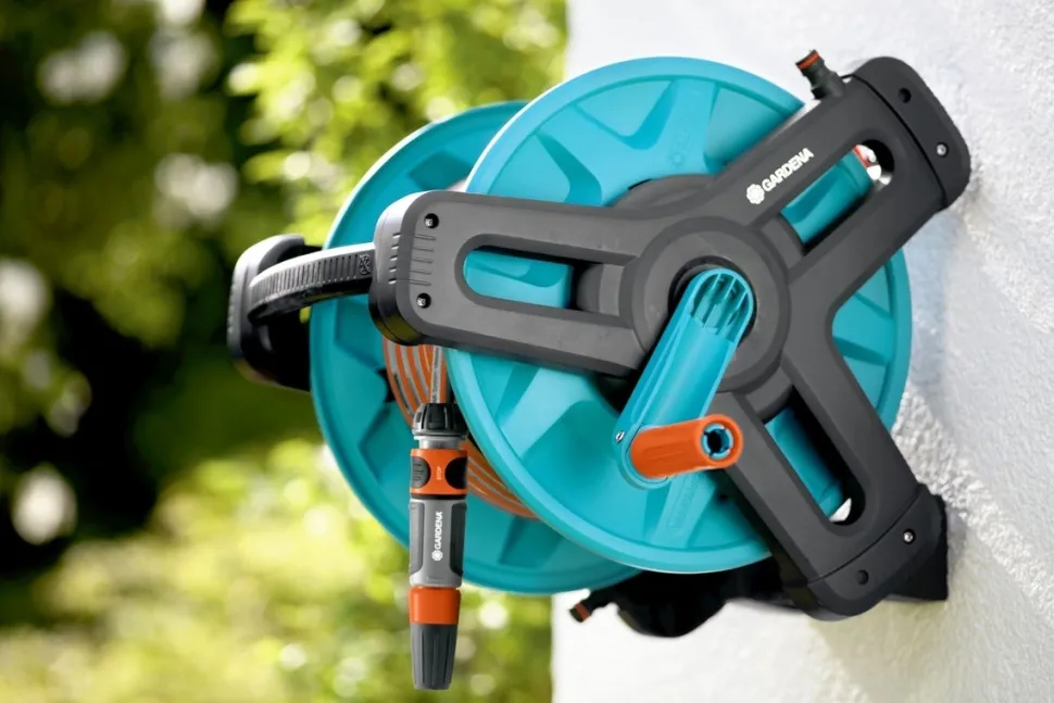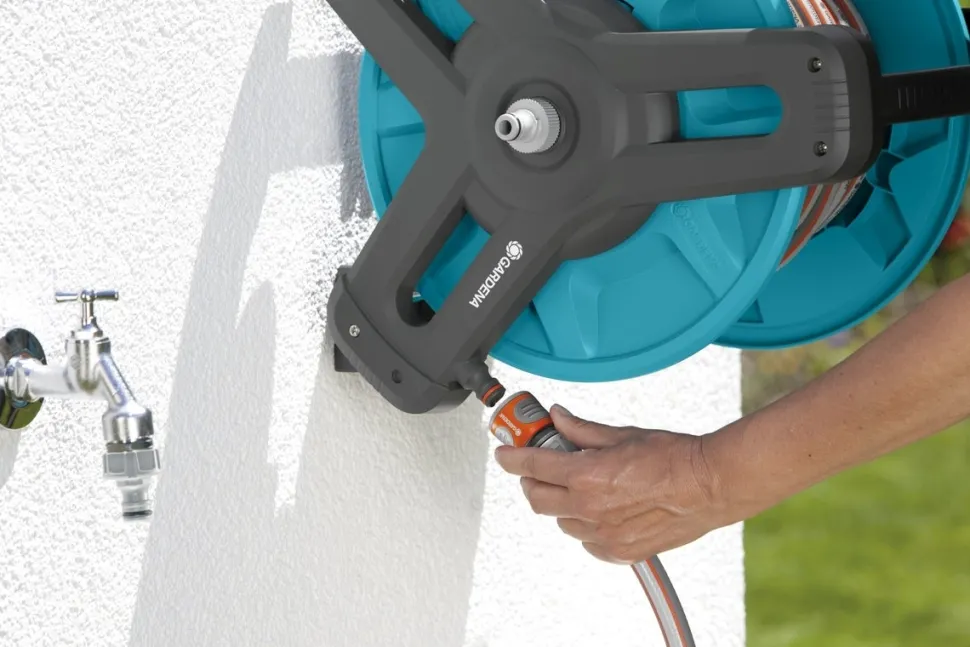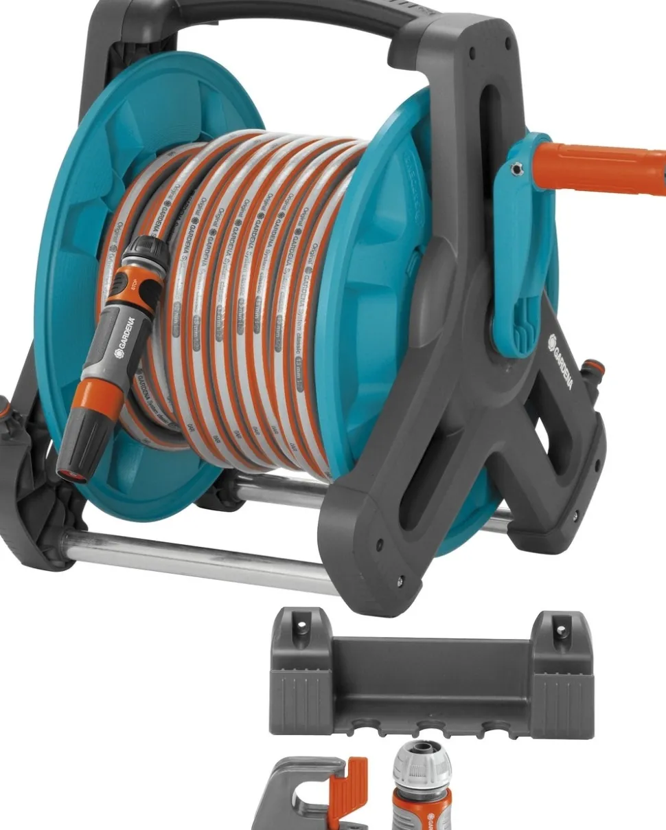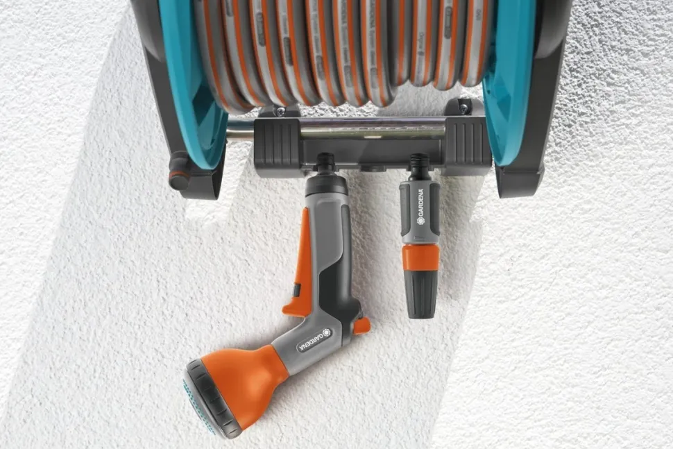 Die Gardena Classic Wand-Schlauchtrommel 50 ist ein Komplett-Set mit einem 20 Meter langen 13 mm (1/2″) Schlauch, einer Gardena Classic Gartenspritze und allen erforderlichen Original Gardena Anschlüssen: zwei Hahnverbinder, ein Schlauchverbinder und ein Adapter. Damit eignet sich das Set ideal für mittelgroße bis große Gärten.