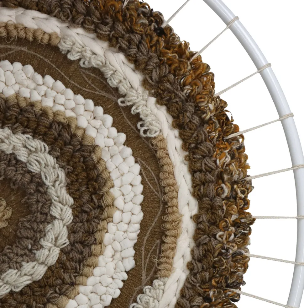 Dieser wunderschöne Wandhänger aus dem Sortiment von HD Collection ist eine echte Bereicherung für dein Zuhause und verbreitet eine ruhige Atmosphäre. Er hat eine runde Form und ist unter anderem aus Wolle, Polyester und Acryl gefertigt. Verschiedene Braun- und Weißtöne in einer schönen Knüpftechnik sorgen für einen äußerst dekorativen Wandschmuck.