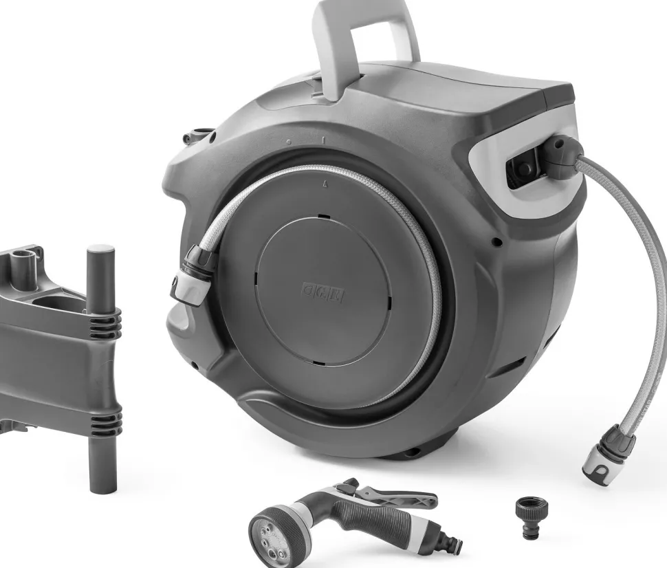 Die Hozelock Wand-Schlauchbox hat eine Gartenschlauchlänge von 25 m und ist mit einer Aufrollautomatik ausgestattet, wobei eine kräftige Feder den Schlauch automatisch aufwickelt, ohne Knicke, Verwicklungen oder Anstrengung.