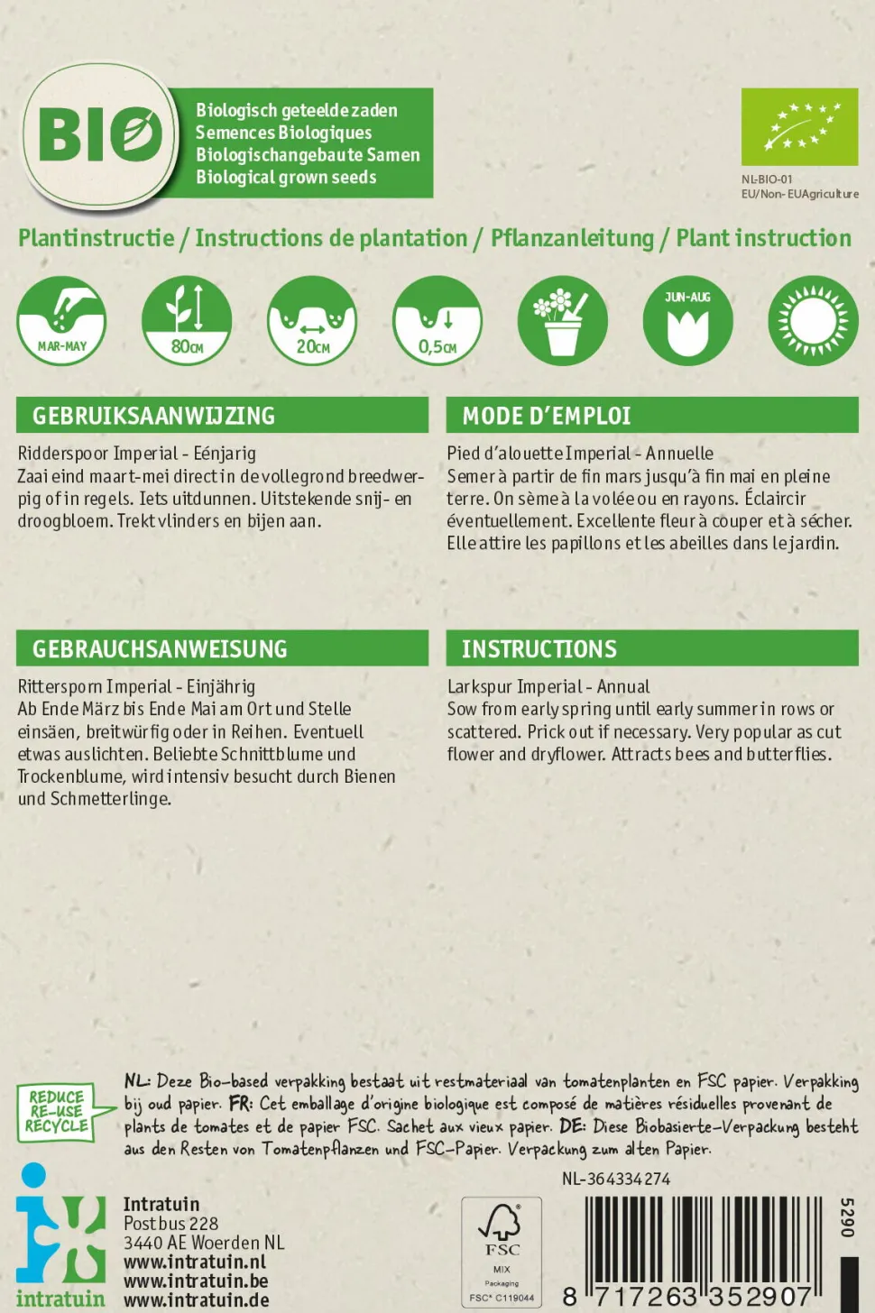 | Besonderheiten | Dieses biologisch angebaute Saatgut ist von der Stiftung SKAL zertifiziert. Du erkennst biologische Produkte an dem Bio-Siegel und an den Begriffen „Bio“ oder „Organic“. |