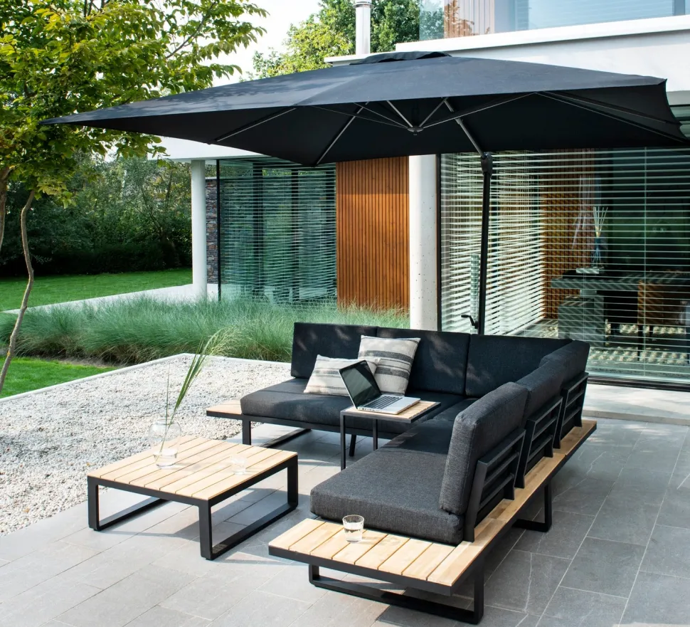 Das Intratuin Lounge-Set ‚Orfeo‘ ist eine hochwertige Gartenlounge aus Aluminium in Kombination mit edlem Teakholz. Dieser Materialmix verleiht diesem Set einen einzigartigen Look: Das Aluminium wirkt modern und ist leicht, sodass du die Loungemöbel auch gut verrücken kannst, während das Holz für ein natürliches Aussehen sorgt und im Laufe der Zeit eine rustikal-gräuliche Farbe annimmt. Komfortable, dicke Kissen bilden einen schönen Kontrast zu dem robusten Look.