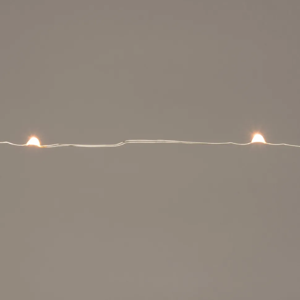 Diese 1 m lange Drahtlichterkette von Intratuin in der Farbe Silber hat 10 warmweiße LED-Lämpchen und ist batteriebetrieben, wodurch du die die Lichterkette überall im Haus einsetzen kannst. Platziere die Lichterkette z.B. in einer durchsichtigen Vase, Flasche oder Laterne oder kombiniere sie mit (Weihnachts-)Dekoration deiner Wahl. Auch in einer Schale oder auf einem Deko-Teller kommt diese Lichterkette gut zur Geltung. Diese Lichterkette eignet sich zudem als Beleitung für größere Pflanzen.