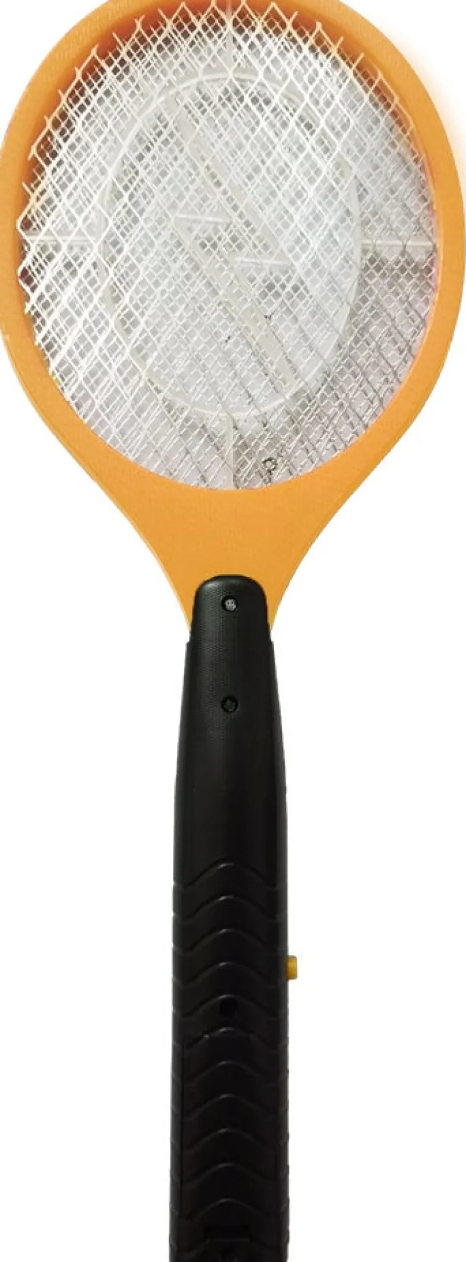 Diese elektrische Insektenklatsche ist eine praktische Lösung, wenn dich Mücken und Fliegen nerven. Die Fliegenklatsche hat die Form eines Tennisschlägers, der Schlägerkopf ist gelb und der Griff schwarz. Wenn du den Knopf an der Seite drückst, wird der Schlägerkopf unter Strom gesetzt, so dass die Insekten getötet werden, wenn sie ihn berühren. Auf diese Weise kannst du Mücken und andere Schädlinge leicht vernichten ohne auf sie einzuschlagen. Diese elektrische Fliegenklatsche funktioniert ohne Chemikalien. Die benötigten Batterien sind nicht im Lieferumfang enthalten.