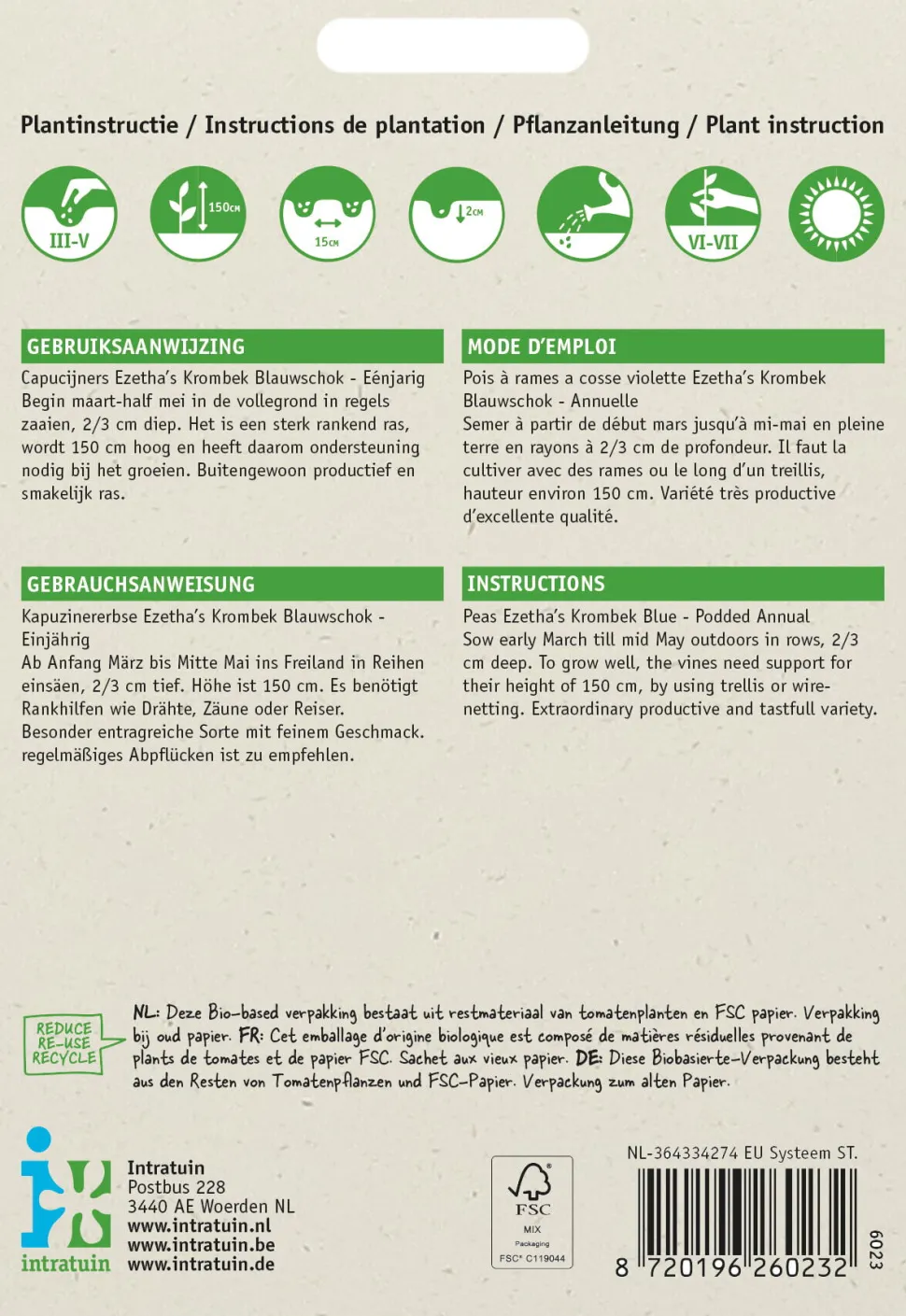 | Botanischer Pflanzenname | Pisum sativum ‚Ezethe’s Krombek Blauwschok‘ |