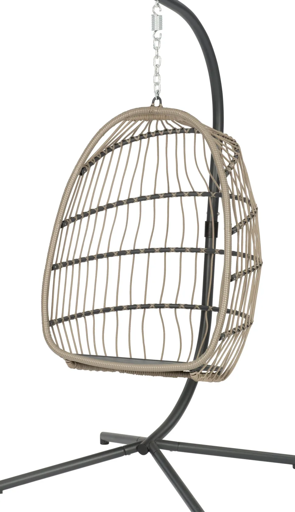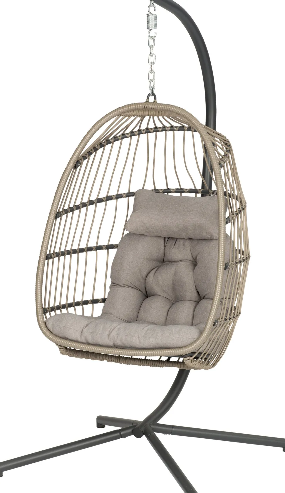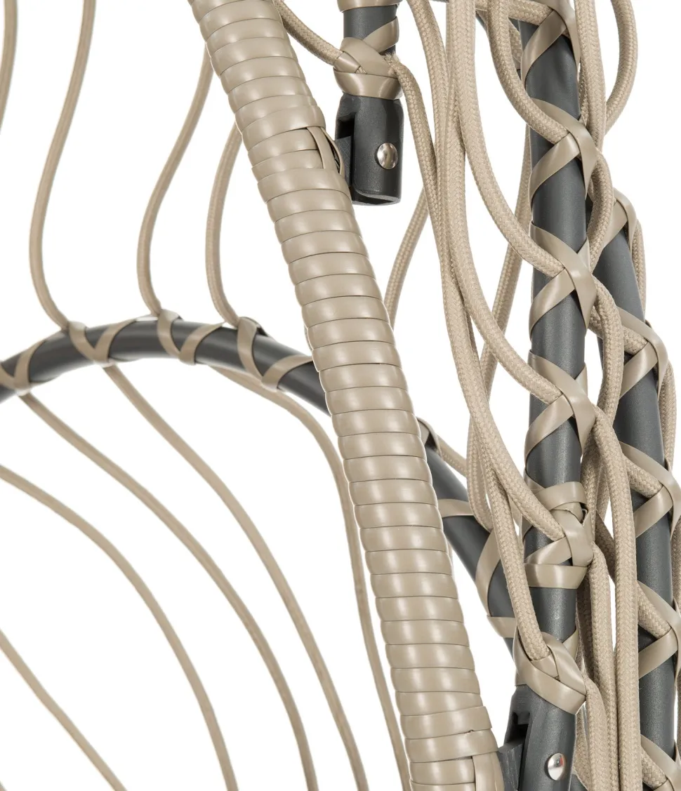 In diesem komfortablen Hängesessel ‚Pax‘ von Intratuin kannst du die Natur genießen und deinen Garten aus einer ganz neuen Perspektive betrachten. Schöner geht’s kaum! Der Hängesessel ‚Pax‘ ist ein 1-Personen-Sessel mit einem dunkelgrau beschichteten Stahlrahmen, der mit einem Geflecht aus Nylonseil in kühlem Grau bespannt ist. Dieses Seil ist extrem stark und wurde speziell für den Außenbereich entwickelt. Du musst dir also keine Sorgen machen, dass das Geflecht mit der Zeit seine Festigkeit verliert. Der für das Nylonseil verwendete Kunststoff ist für seine lange Lebensdauer bekannt und ist daher bestens für Gartenmöbel geeignet. Ein schöner Materialmix, der dafür sorgt, dass du diesen schönen Hängesessel noch mehr lieben wirst. Das im Lieferumfang enthaltene Gestell ist schwarz und mit einer schützenden Pulverbeschichtung versehen. Im Gegensatz zu vielen anderen Hängesesseln ist der Hängesessel ‚Pax‘ zusammenklappbar, so dass platzsparend aufbewahrt werden kann, wenn er nicht in Verwendung ist. Durchdacht bis ins letzte Detail!