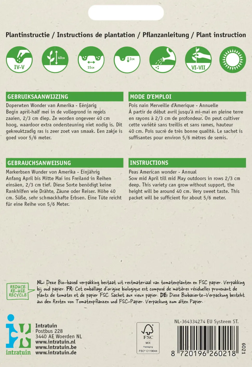 | Botanischer Pflanzenname | Pisum Sativum ‚Wonder van Amerika‘ |