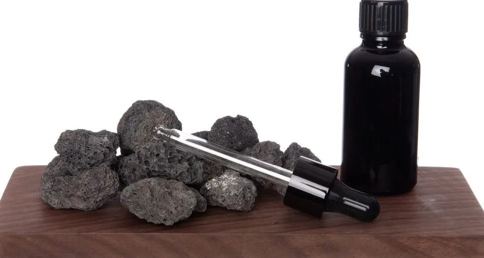 Dieses Raumduft-Set aus Vulkanstein von Intratuin ist ein echter Hingucker! Das Set besteht aus einem Holzbrett, auf dem Vulkansteine platziert werden können, sowie einem Fläschchen mit Duftöl und einer Pipette.