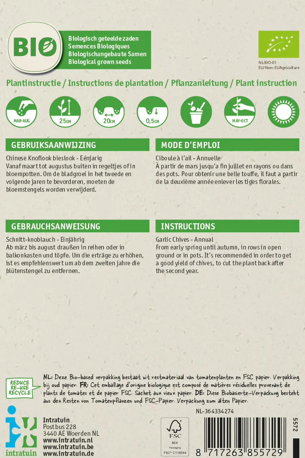 Dieser Schnittknoblauch ist winterhart, mehrjährig und hat einen milden Knoblauchgeschmack, der aber nach dem Verzehr keine unangenehmen Gerüchte entstehen lässt. Allen Pflanzenteilen werden zudem medizinische Wirkungen nachgesagt. Eine Spezialität ist es, die noch ungeöffneten Blütenknospen des Schnittknoblauchs in einen dünnen Teig zu tunken und anschließend zu frittieren. Die Schnittknoblauch-Samen können von September-November im Gewächshaus gepflanzt werden, dann lässt er sich von November bis März ernten.