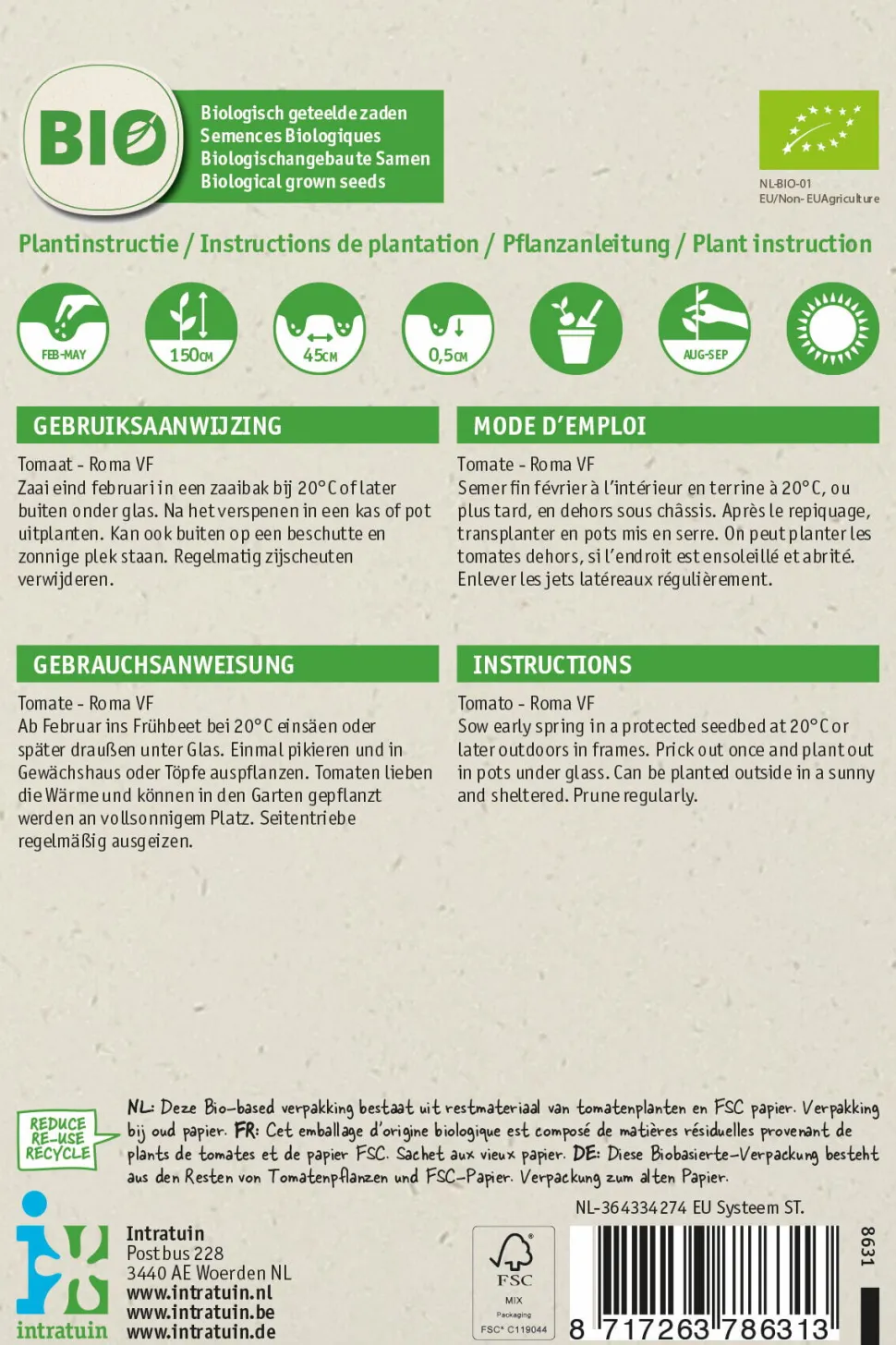 Auch wenn viele die Tomatensorte ‚Roma‘ in Italien verorten, stammt die Sorte ursprünglich aus Amerika. Die ‚Roma‘-Tomatenpflanze trägt viele eiförmige, rote Tomaten von mittlerer Größe, die einen guten Geschmack haben. Die Tomatenpflanzen werden ca. 250 cm hoch und müssen an Stäben oder an einem Draht hochgebunden werden, damit sie nicht abknicken. Säe die Tomatensamen am besten Anfang März in einem Anzuchtkasten oder in Anuchttöpfen bei 20° C aus. Nach dem Pikieren im April wachsen die Tomatenpflanzen zu kräftigen Pflanzen heran, die schließlich ins Gewächshaus oder in einen großen Topf gepflanzt werden. Warte mit dem Auspflanzen bis nach Mitte Mai und gewöhne die Pflanzen schrittweise an die niedrigeren Temperaturen. Die Sorte ‚Roma‘ ist auch für die Freilandkultur an einem sonnigen, geschützten Platz geeignet. Die behaarten Stängel der Tomatenpflanzen sind anfällig für Schimmel und sollten daher möglichst trocken gehalten werden. Aus diesem Grund werden Tomaten oft unter einem möglichst lichtdurchlässigen Vordach angebaut.