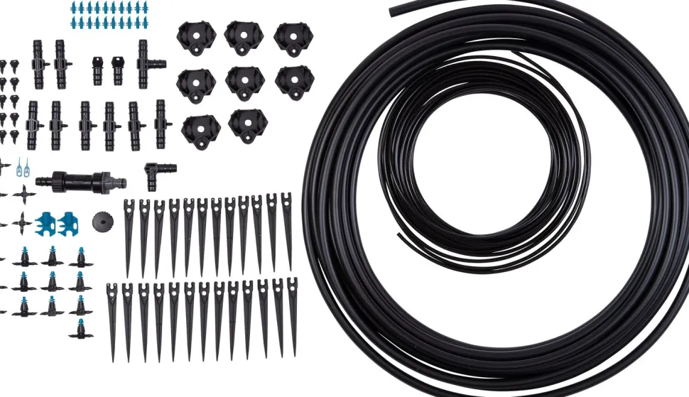 Auch wenn die Sonne brennt und es lange warm ist: Mit diesem Tropfsystem von Intratuin sorgst du dafür, dass es deinen Pflanzen in Beeten und auf der Terrasse gut geht. Dieses Tropfsystem wird zur Bewässerung von Blumenkästen auf Terrassen und in Beeten verwendet. Es handelt sich um einen wassersparenden Gartenberegner. Einschließlich 15 m Zufuhrleitung, 15 m Verteilleitung und Druckregler mit Filter.