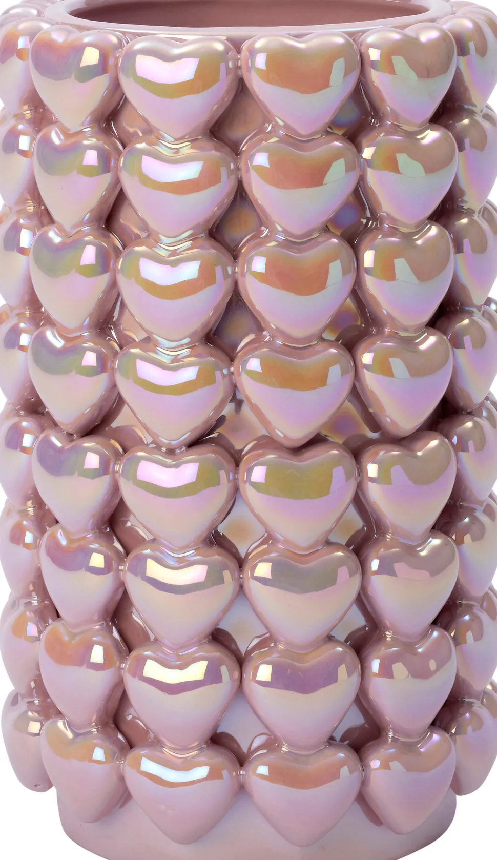 Bring einen Hauch von Liebe in deine Einrichtung mit dieser bezaubernden Vase Fay aus der Kollektion von Intratuin! Die zartrosa Farbe mit dem 3D-Herzmotiv und der schillernden Oberfläche verleiht jedem Raum eine elegante, romantische Note. Stell sie auf eine Fensterbank, einen Tisch oder ein Regal, um deine Lieblingspflanzen stilvoll zu präsentieren. Die Vase ist 16 x 16 x 27 cm groß.
