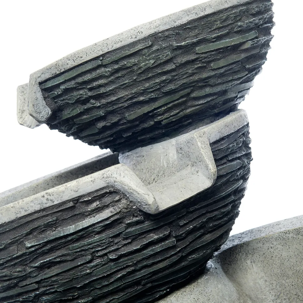 Hast du keinen Platz für einen Gartenteich, willst aber trotzdem nicht auf das entspannende Geräusch von plätscherndem Wasser im Garten verzichten? Dann ist ein Wasserspiel oder Zierbrunnen die Lösung! Mit einem Wasserspiel kannst du auf kreative Weise Wasser in deinem Garten oder auf deiner Terrasse ergänzen. Das sorgt für zusätzliche Dimension und Atmosphäre im Garten! Das Wasserspiel ‚Norfolk‘ ist aus Polyresin in der Farbe Grau gefertigt und hat eine robustes und gleichermaßen rustikales Aussehen. Das Wasserornament besteht aus 3 großen Schalen, durch die das Wasser ruhig strömt. Das erzeugt ein entspannendes Plätschern im Garten, das dich im Nu zur Ruhe kommen lässt.