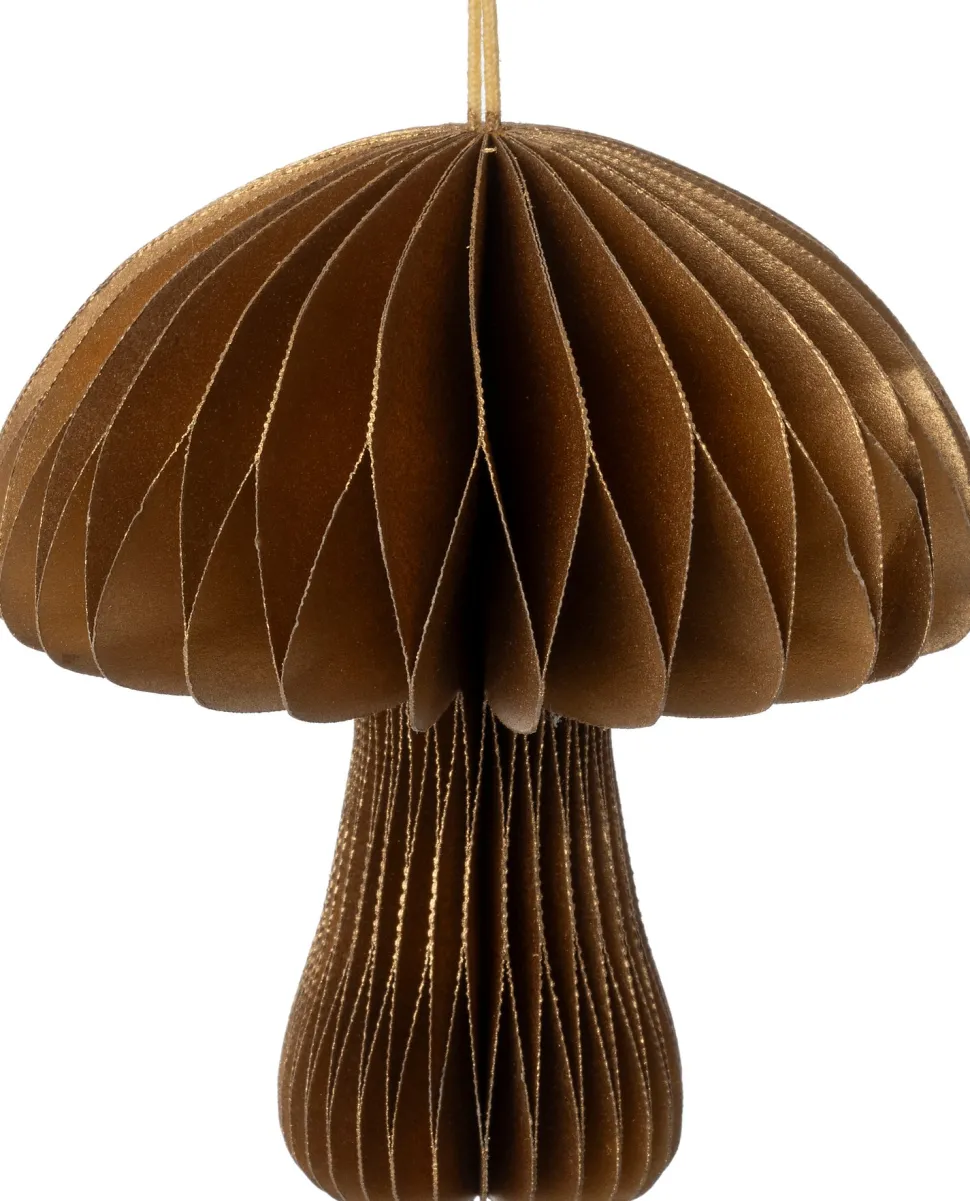 Schaffe eine warme Weihnachtsatmosphäre in deinem Zuhause während der Feiertage mit diesem Ornament von Intratuin! Dieser Weihnachtsbaumschmuck hat das Aussehen eines Pilzes und eine feierliche goldene Farbe mit einem dezenten goldenem Glitzer. Der Pilz ist aus Papier gefertigt. Perfekt für einen stilvollen und langlebigen Weihnachtsbaumschmuck.