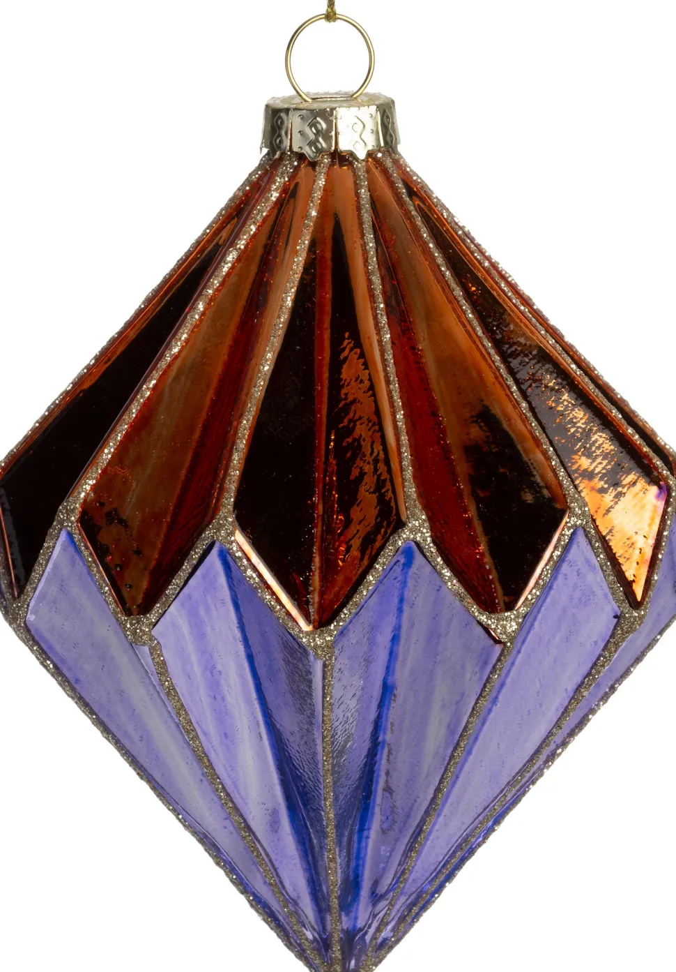 Neben den traditionellen Weihnachtskugeln hat Intratuin auch andere Formen im Sortiment. Zum Beispiel diesen rautenförmigen Weihnachtsbaumschmuck in Lila und Orange. Mit seiner schönen Oberfläche wird er in jedem Baum glänzen. Da das Ornament aus Glas besteht, solltest du es an einem sicheren Ort aufhängen, an dem es nicht leicht fallen kann. Kombiniere mit verschiedenen Kugeln und Ornamenten in passenden Farben und vervollständige deine unvergleichliche Weihnachtsdeko!