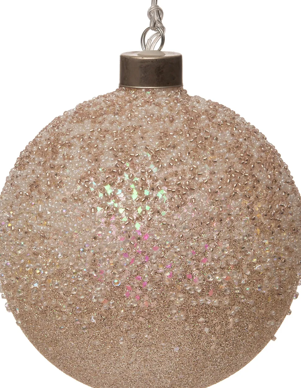 Die Weihnachtskugel Rosy von Intratuin ist handgefertigt aus Glas und mit Glitzer und Perlen in der Farbe gold (rosegold) verziert. Die Christbaumkugel ist mit LEDs beleuchtet und benötigt Batterien. Die Weihnachtskugel hat einen Durchmesser von 12 cm und ist in verschiedenen Farben und Größen bei Intratuin erhältlich.