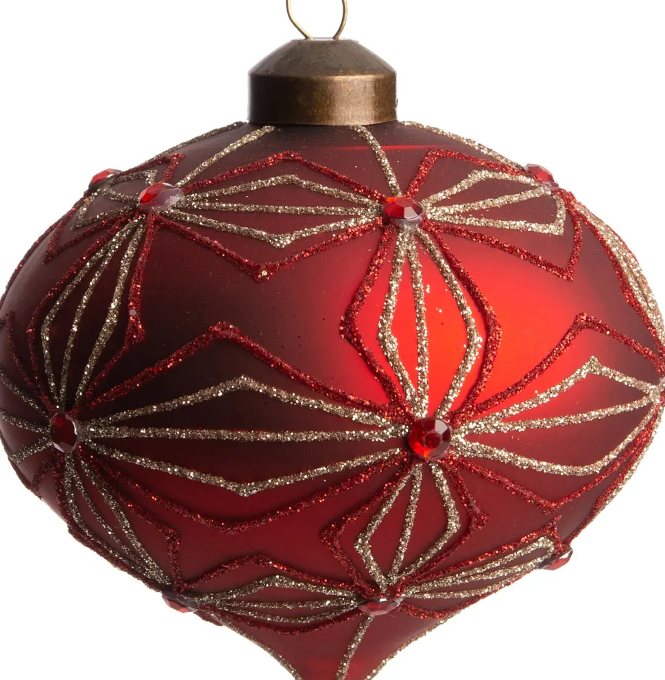 Diese extravagante Weihnachtskugel namens Vannes von Intratuin ist eine stilvolle Ergänzung für deinen Weihnachtsbaum. Kombiniere unterschiedliche Farben und Formen und wächsle glitzernde Oberflächen mit glänzendem und mattem Weihnachtsbaumschmuck ab, denn so entsteht ein stimmungsvolles Gesamtbild. Die Zwiebelform und das silber-rote Muster machen diese rote Weihnachtskugel so besonders. Die Weihnachtskugel ist aus Glas gefertigt und hat einen Durchmesser von 10 cm. Diese Weihnachtsdekoration ist aus recyceltem Glas hergestellt und passt somit zu einem umweltbewussten Weihnachtsfest.