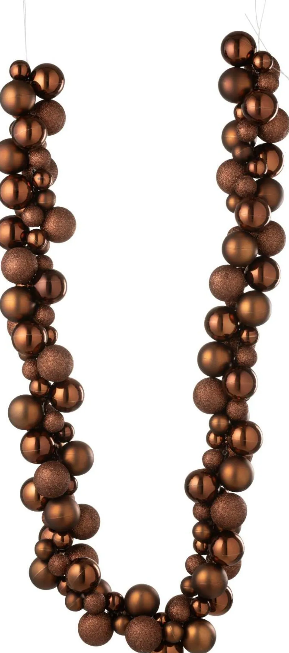 Die J-Line Weihnachtsgirlande Weihnachtskugeln braun 1,6 m ist eine stilvolle Weihnachtsdekoration, die deinem Zuhause sofort Atmosphäre und Eleganz verleiht. Diese Girlande besteht aus verschiedenen braunen Weihnachtskugeln in unterschiedlichen Größen und Oberflächen, darunter glänzend, matt und mit Glitzer. Mit einer Gesamtlänge von 1,6 m ist diese Dekoration vielseitig einsetzbar und ideal für alle, die während der Feiertage eine warme, natürliche Ausstrahlung suchen. Die braune Farbe passt perfekt zu modernen und ländlichen Wohninterieurs und bildet eine schöne Basis für weitere Weihnachtsdekorationen.