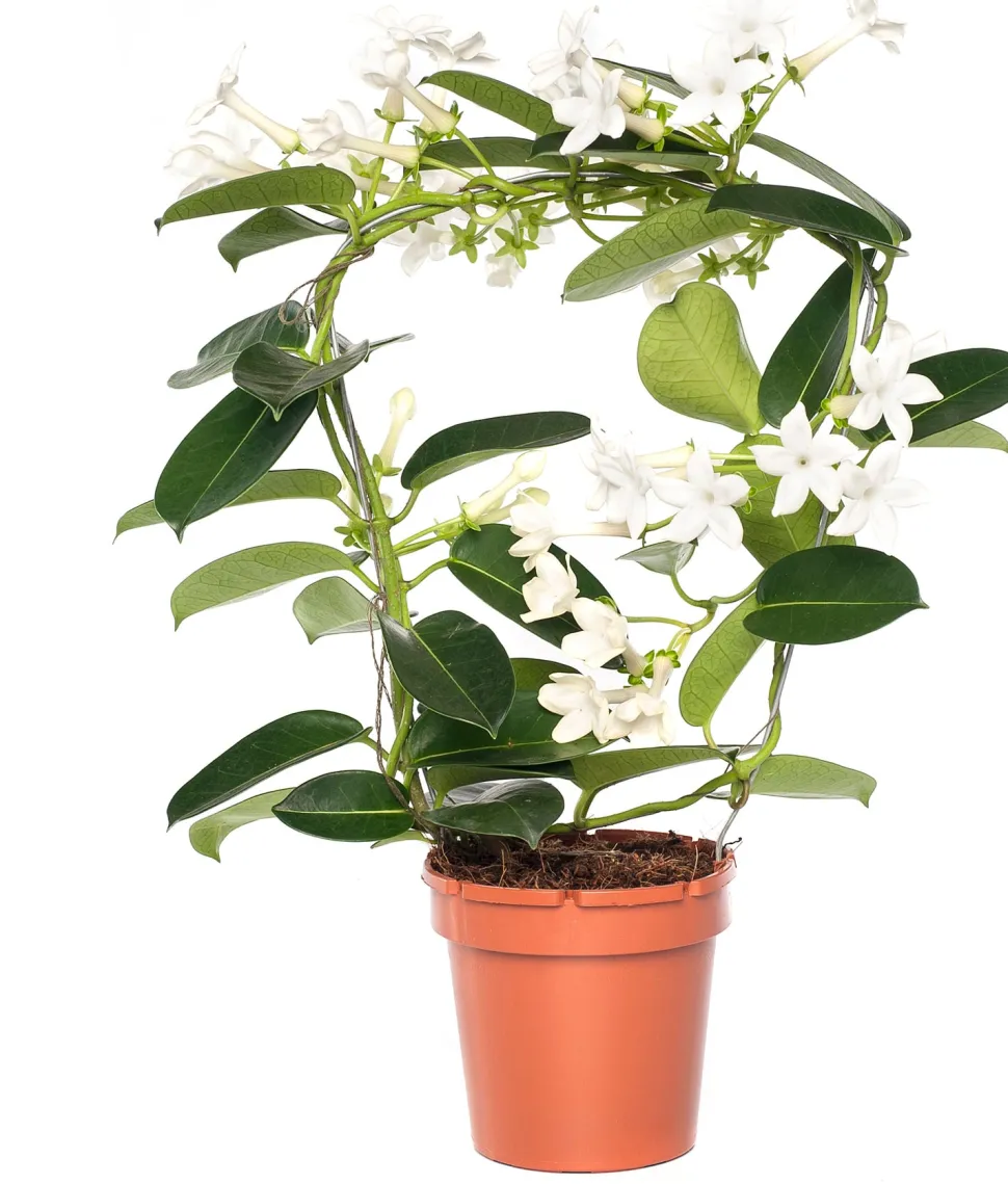 | Pflegetipps | Wenn die Pflanze verblüht ist, kann sie sehr einfach wieder zum Blühen angeregt werden. Gönne der Stephanotis eine kühlere Ruhephase (±12°C) in den dunkleren Monaten mit weniger Wasser und ohne Dünger. Im Frühjahr bilden sich dann wieder neue Knospen, sobald die Tageslänge 12 Stunden überschreitet. |
