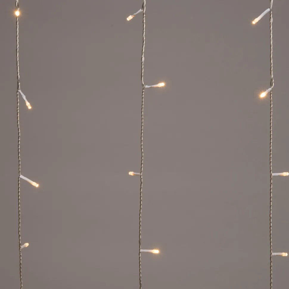 Der Lichtvorhang ist ein stimmungsvolles LED-Licht für den Innen- und Außenbereich und wird mit 5 m transparenter Schnur und einer Zeitschaltuhr geliefert. Hänge diese Lichterkette entlang der Dachrinne auf und genieße das Wintergefühl, wenn die kleinen LED-Lichter im Dunkeln warmweiß leuchten.