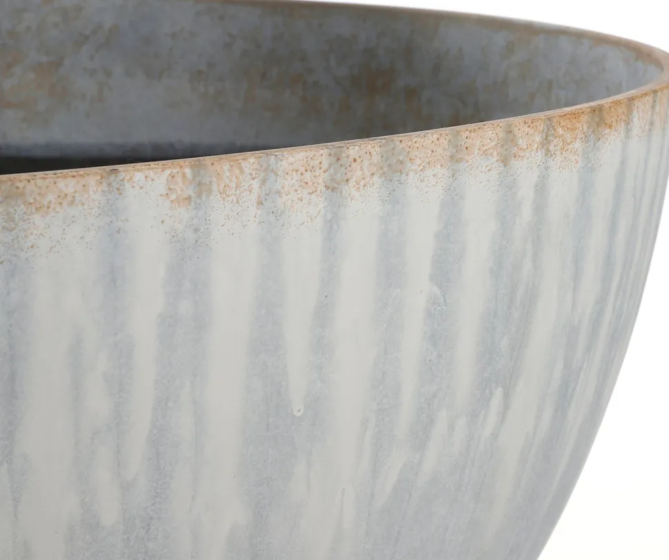 Erst wenn du die Bravo-Pflanzschale von Mica Decorations anhebt, merkst du, dass sie nicht aus Stein ist. Die Schale ist aus leichtem Kunststoff gefertigt und leicht anzuheben. Die hellgraue Farbe mit der Zinkoberfläche verleiht ihr jedoch einen robusten Betonlook. Eine große oder mehrere kleine Pflanzen eignen sich hervorragend für diese Pflanzschale.