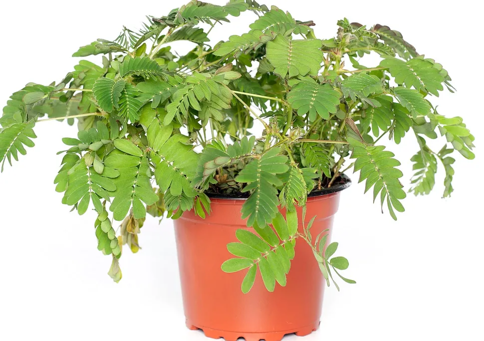 Die Mimose (Mimosa pudica) wird speziell als Zimmerpflanze angebaut. Sie stammt aus dem tropischen Südamerika.