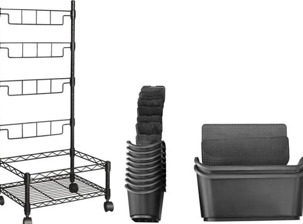 Außerdem kannst du das Regal dank seiner Räder an der Unterseite leicht bewegen.