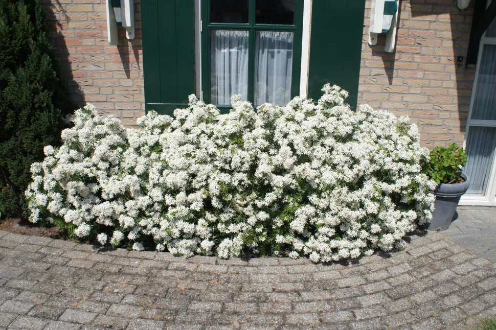 Dieser Strauch hat feine grüne Blätter, die das ganze Jahr über schön glänzen. Sowohl die Blätter als auch die weißen Blüten haben einen starken Duft, der der Blüten ist jasminartig. Der Duft des Blattes verrät uns, dass die Pflanzen mit der Weinraute (Ruta graveolens) verwandt ist, die Katzen so gar nicht mögen. Normalerweise blüht die Choisya in der Zeit von April bis Juni, aber manchmal überrascht sie damit auch im Winter. Dieser Strauch braucht einen humusreichen, gut durchlässigen Boden und ist einigermaßen winterhart. Choisya kann nach vielen Jahren eine Höhe von 150-200 cm erreichen, aber das Wachstum dieser Pflanze ist eher langsam.