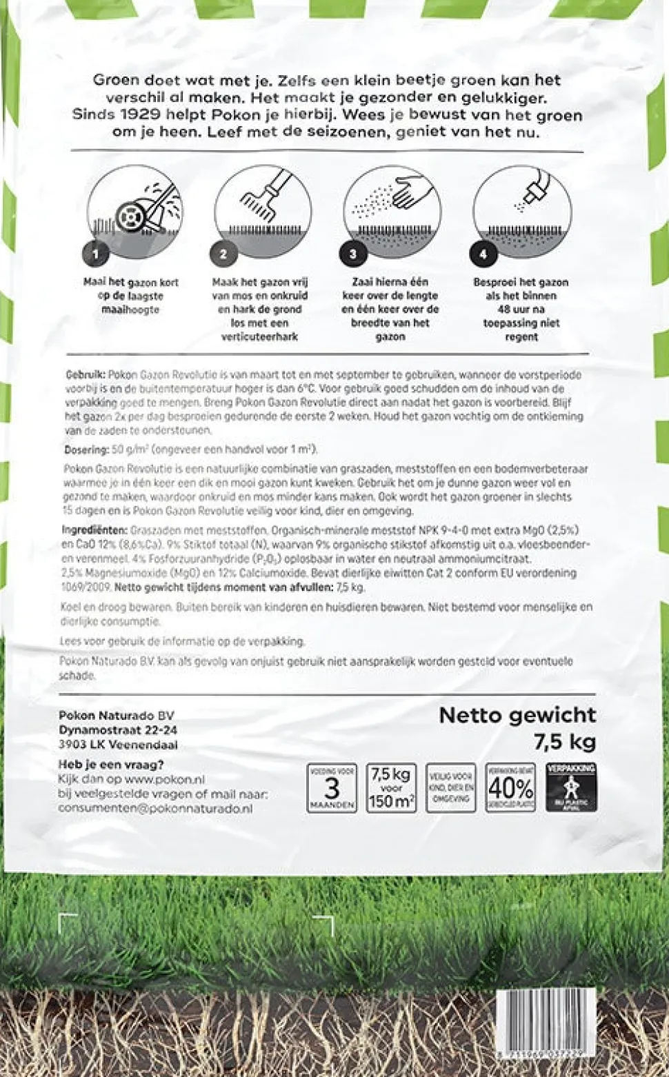Dieses Pokon 3-in-1 – Produkt ist ein praktisches All-in-One-Produkt. Es enthält eine natürliche Kombination aus Grassamen, Dünger und einem Bodenverbesserer. Damit kannst du in einem Arbeitsgang einen dichten und schönen Rasen wachsen lassen. Dieses Pokon 3-in-1 – Produkt ist auch geeignet, um einen dünnen Rasen wieder voll und gesund zu machen. Unkraut und Moos haben weniger Chancen. In nur 15 Tagen wird der Rasen grüner. Dieses Produkt ist sicher für Kinder, Tiere und die Umwelt.