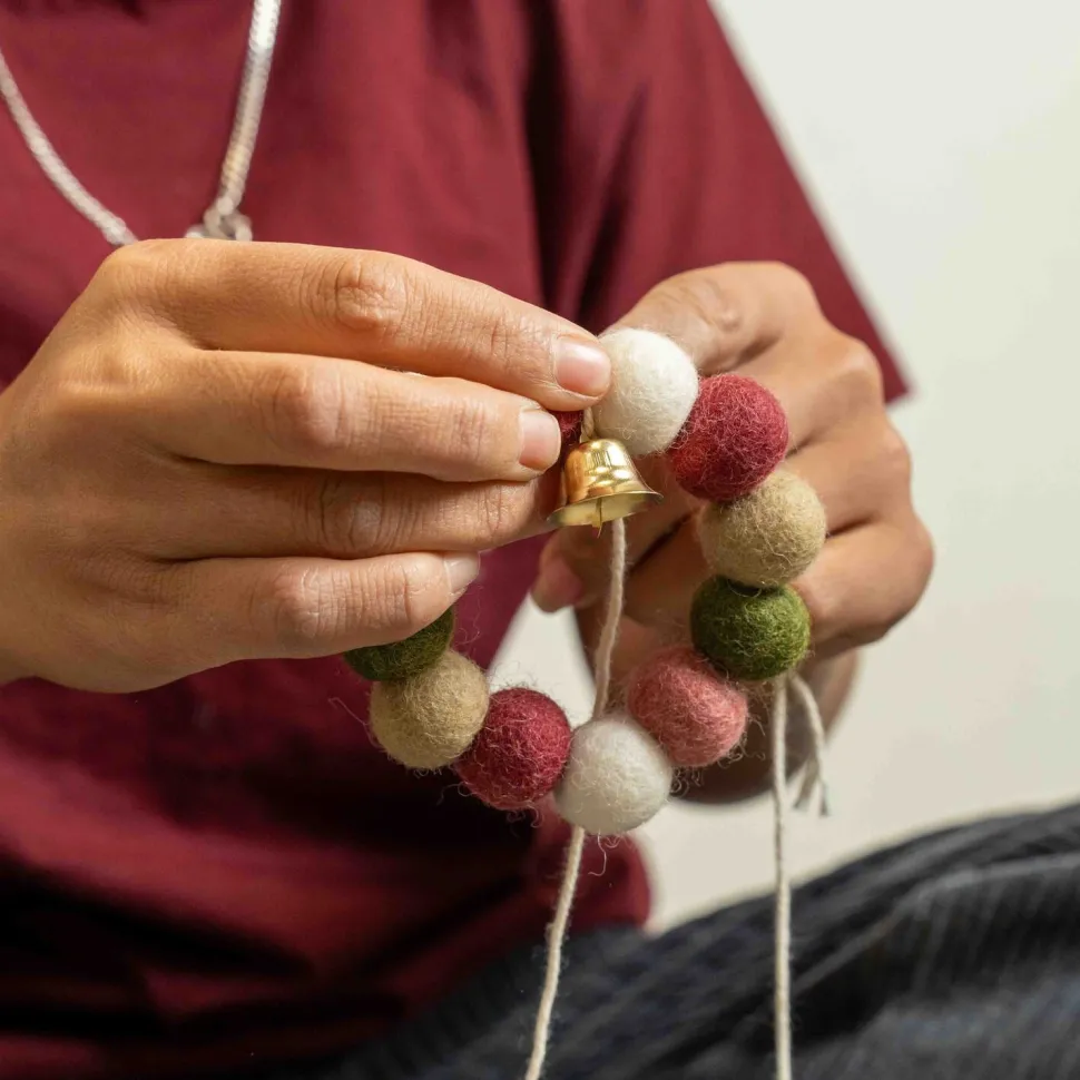 Der helle, mehrfarbige Kranz harmoniert perfekt mit anderen Weihnachtsdekorationen. Er sieht auch außerhalb des Weihnachtsbaums wunderschön aus: Befestige ihn an einem dekorativen Zweig in einer Vase, hänge ihn ans Fenster oder verwende ihn als Serviettenring auf deinem festlich gedeckten Tisch. Der weiche Filz schafft eine warme, gemütliche Atmosphäre und mildert dezent den Glanz von Glas- und Metalldekorationen. Da jeder Kranz handgefertigt ist, hat jeder seinen eigenen, einzigartigen Charakter. Das macht deine Weihnachtsdekoration besonders persönlich. Er ist auch ein schöner Gesprächsanlass in der Weihnachtszeit: Hinter jedem Kranz verbirgt sich die Geschichte von Frauen in Nepal, die durch „Sjaal met Verhaal“ ehrliche Arbeit und ein Einkommen erzielen. So verleihst du deiner Weihnachtsdekoration Bedeutung und trägst zu einer schöneren Geschichte bei. Mit seinem kompakten Durchmesser von 9 cm eignet sich der Kranz für Bäume jeder Größe, vom kleinen Tischbaum bis zum großen Wohnzimmerbaum. Setze dieses Jahr mit Dekorationen, die wirklich etwas aussagen, ein Zeichen.