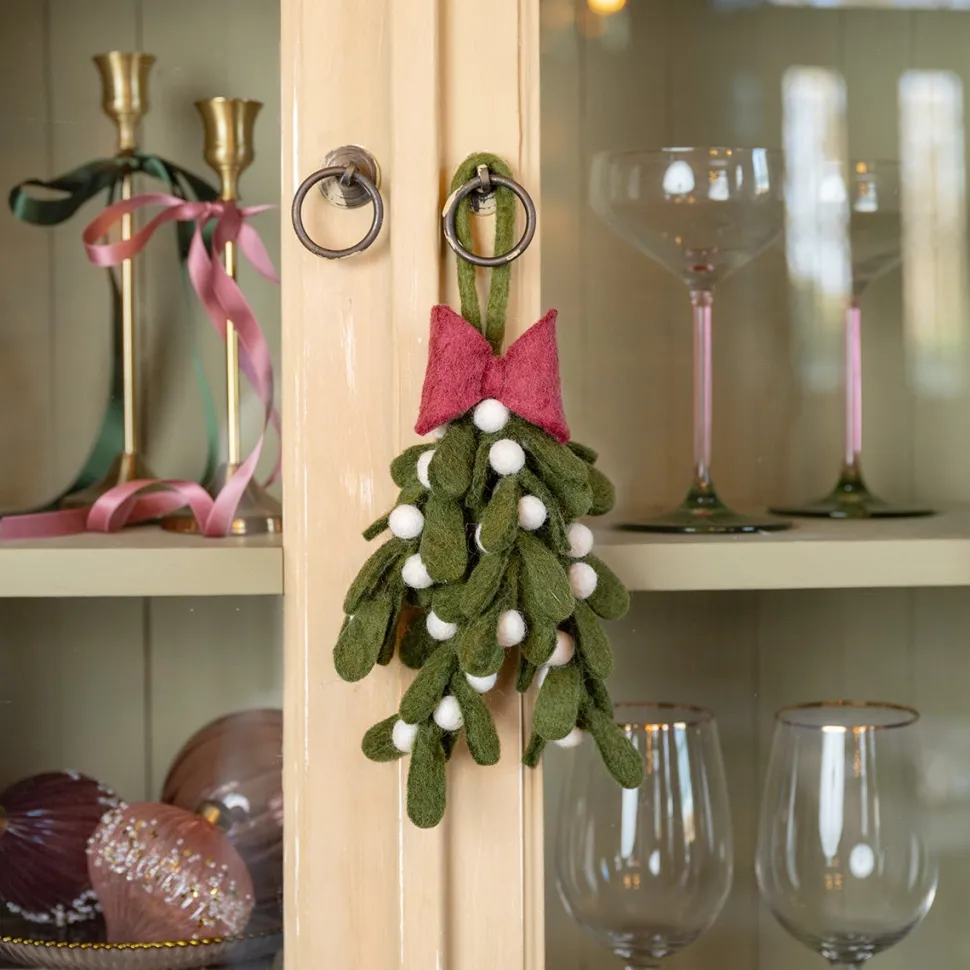 Der Weihnachtsschmuck „Sjaal met Verhaal“ in Form eines Mistelzweiges (grün, weiß, rot, 26 x 14 x 5 cm) ist eine einzigartige Dekoration, die traditionelle Symbolik mit handwerklicher Kunstfertigkeit verbindet. Diese handgefertigte Mistel aus 100 % Wollfilz in den klassischen Weihnachtsfarben Grün, Weiß und Rot bringt nicht nur festliche Stimmung in dein Zuhause, sondern erzählt auch eine wunderschöne Geschichte. Mit seinen Maßen von 26 x 14 x 5 cm ist dieser Weihnachtsschmuck groß genug, um aufzufallen, und dennoch elegant und vielseitig. Die Mistel symbolisiert traditionell Liebe, Glück und Verbundenheit – perfekt für die Feiertage.