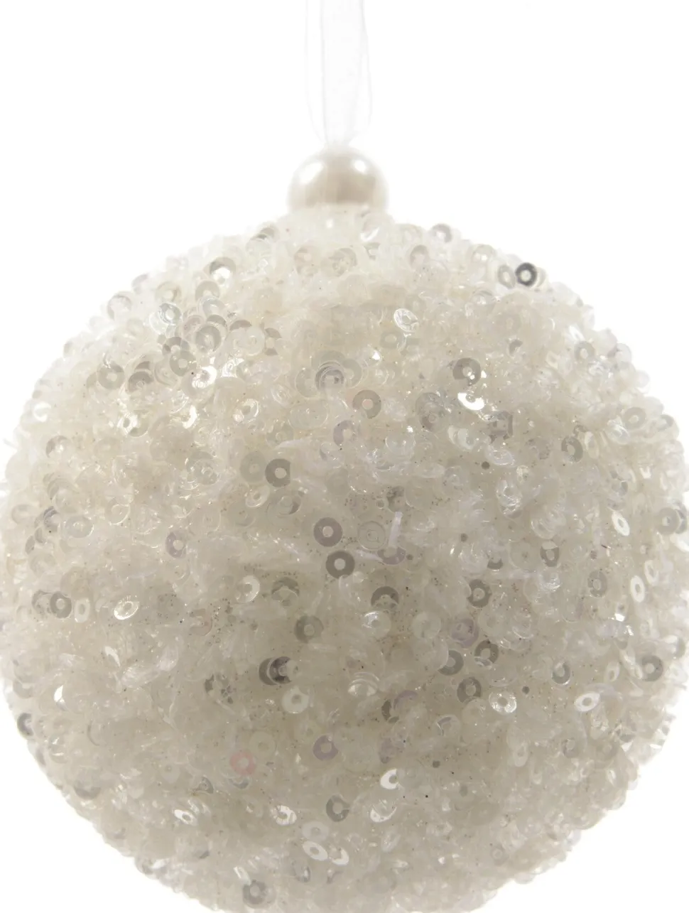 Eine schöne Weihnachtskugel aus Schaumstoff, in der Farbe Winterweiß, mit Glitzer und Pailletten