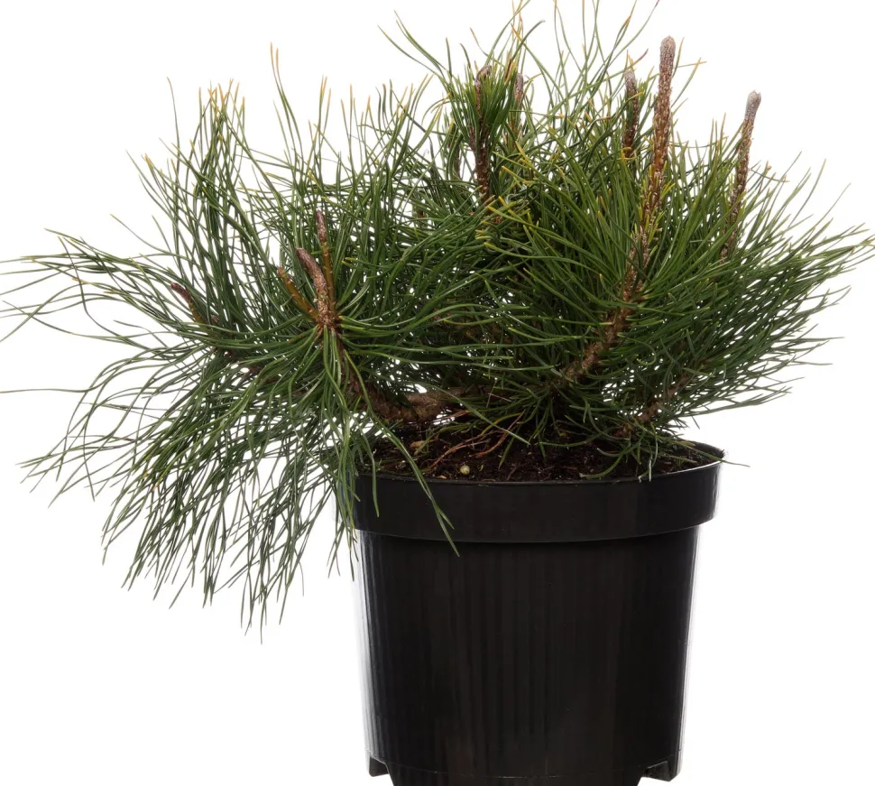 Diese Zwergkiefer ist eine kleinere Art mit schönen langen Nadeln, die in alle Richtungen abstehen. Im Vergleich zu anderen Nadelbäumen stecken die Nadeln paarweise in einer kleinen Hülse, was für die Kiefer charakteristisch ist. Diese Bergkiefer-Art wächst langsam.