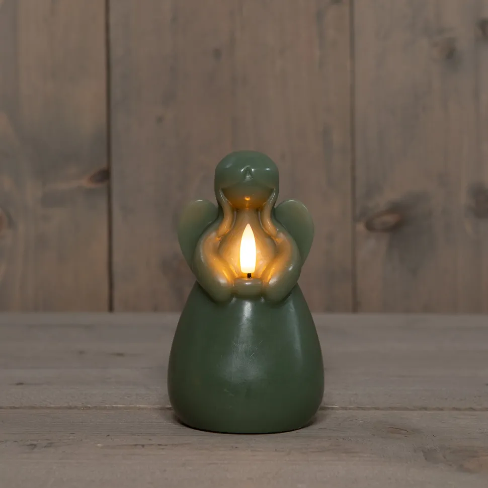 Die Anna’s Collection Ange LED Stumpenkerze Grün ist eine stimmungsvolle Weihnachtsdekoration in Engel-Form, die für zusätzliche Wärme und Gemütlichkeit im Haus sorgt. Diese batteriebetriebene LED-Kerze kombiniert den authentischen Eindruck von echtem Paraffin-Wachs mit der Sicherheit moderner LED-Technologie. Durch die realistische 3D-Flamme und das warme weiße Licht ist diese Engelkerze fast nicht von einer echten Kerze zu unterscheiden, jedoch ohne Brandgefahr oder Kerzentropfen.