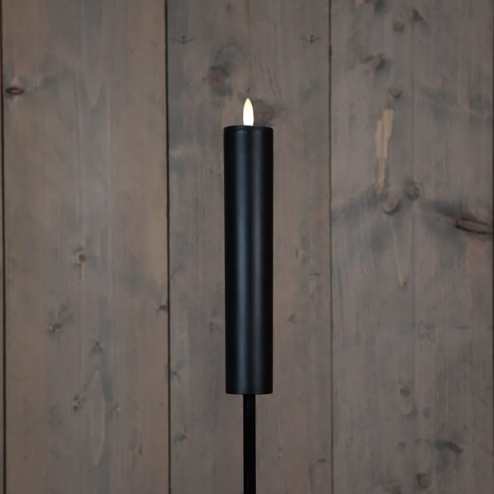 Die Solarfackel mit 3D-Docht in Schwarz von Anna’s Collection verbindet moderne Eleganz mit Langlebigkeit. Mit einem Durchmesser von 4 cm und einer Höhe von 21 cm, montiert auf einem 76 cm hohen Pfahl, verbreitet diese Fackel ein stimmungsvolles Licht.