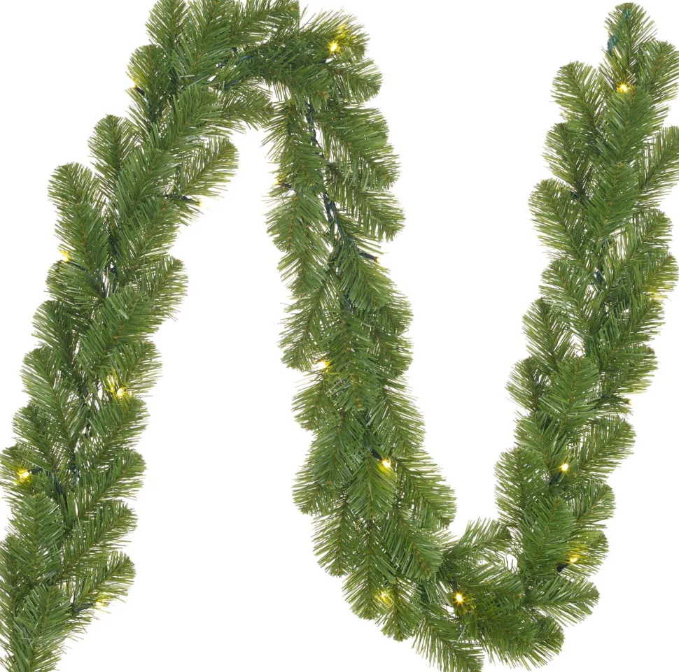 Die 15 warmweiß leuchtenden LED-Lämpchen sind in den Zweigen der 180 cm langen Weihnachtsgirlande verarbeitet und batteriebetrieben. Für die Beleuchtung werden 2 AA-Batterien benötigt; diese sind nicht im Lieferumfang enthalten. Dank der Beleuchtung kannst du die Tannengirlande auf vielen Plätzen aufhängen und für einen weihnachtlichen Hingucker sorgen.