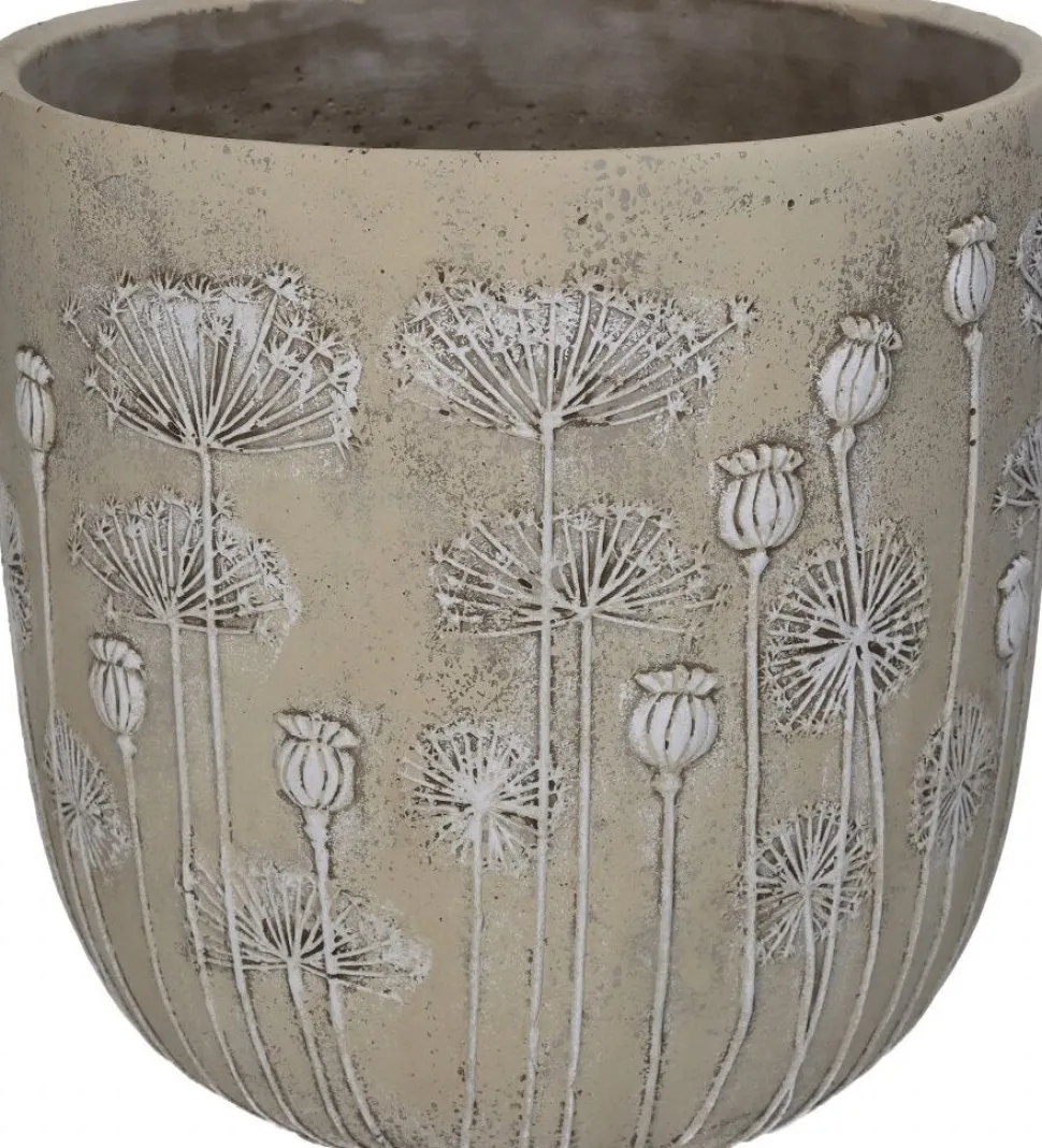 Dieser Blumentopf aus Beton hat ein tolles, natürliches Design und ist mit Mohnblumen verziert. Da dieses Pflanzgefäß die Farbe Creme hat, ist dieses Modell zeitlos und passt zu jedem Stil, egal ob im Wohnzimmer, Arbeitszimmer oder im Schlafzimmer.