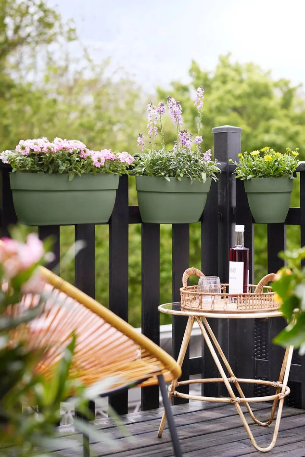 Dieser grüne Vibia-Balkonkasten aus der Elho-Kollektion ist eine echte Bereicherung für deinen Balkon. Der aus recyceltem Kunststoff hergestellte Balkonkasten hat eine rechteckige Form, ist sehr stilvoll und eignet sich hervorragend für mehrere Pflanzen. Noch nie hat das Gärtnern auf dem Balkon so viel Spaß gemacht und die Auswahl war so groß! Die Maße dieses Modells sind 46 x 24,1 x 26,5 cm. Außerdem ist dieses Modell in verschiedenen anderen Größen und Farben erhältlich.