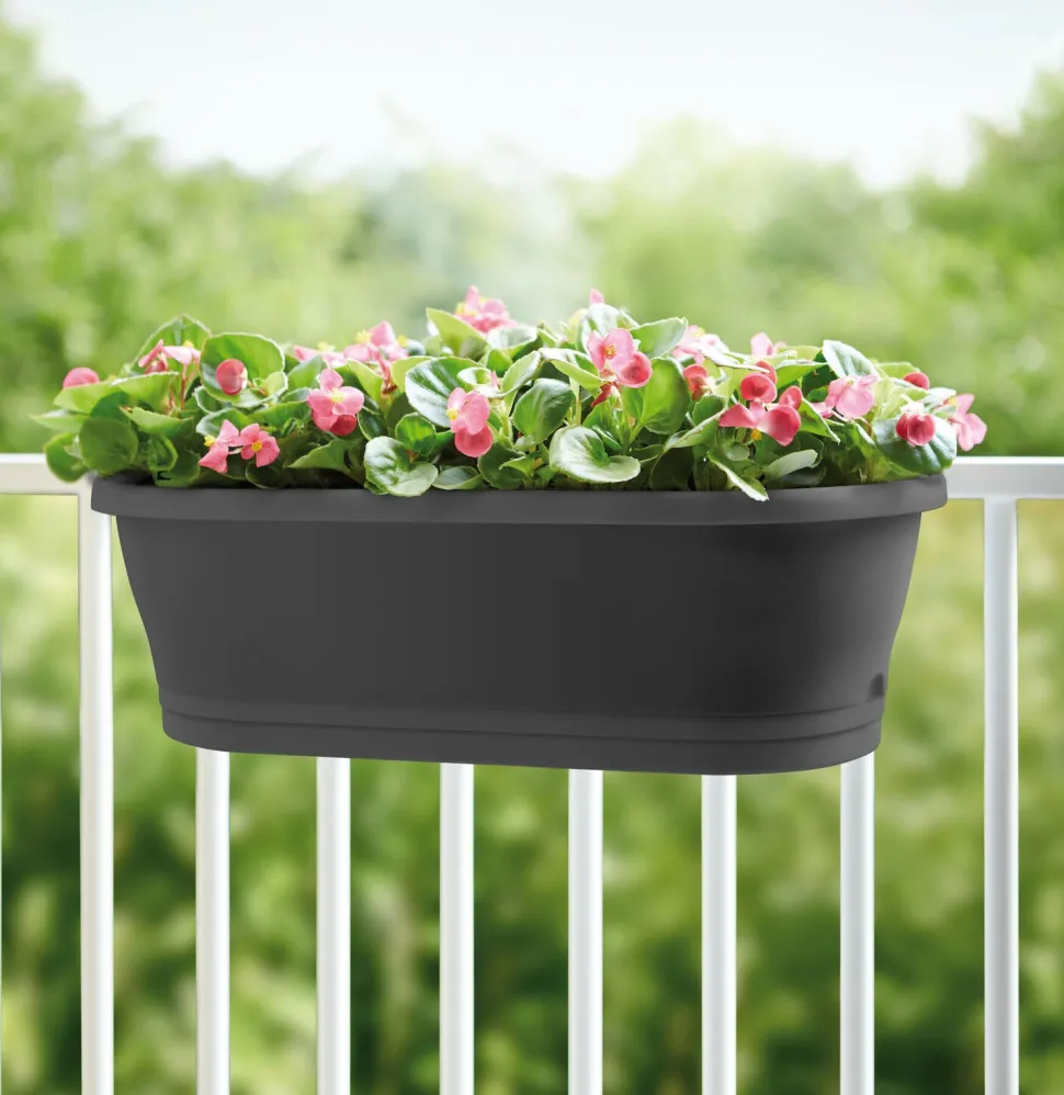 - Der dunkelgraue Balkonkasten ist frostbeständig und daher für alle Jahreszeiten geeignet.