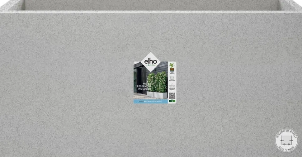 Dieser schöne Design-Pflanzkübel Vivo von Elho ist aus recyceltem Kunststoff hergestellt. Er ist frostbeständig und daher für alle Jahreszeiten im Garten oder auf der Terrasse geeignet. Der graue Pflanzkübel besteht aus hochwertigem Kunststoff, der leicht zu reinigen ist, nicht so leicht beschädigt wird und daher einiges aushält. Dank der unsichtbaren Räder lässt sich der Blumentopf leicht bewegen. Die Maße sind 39 x 78 x 37,5 cm.