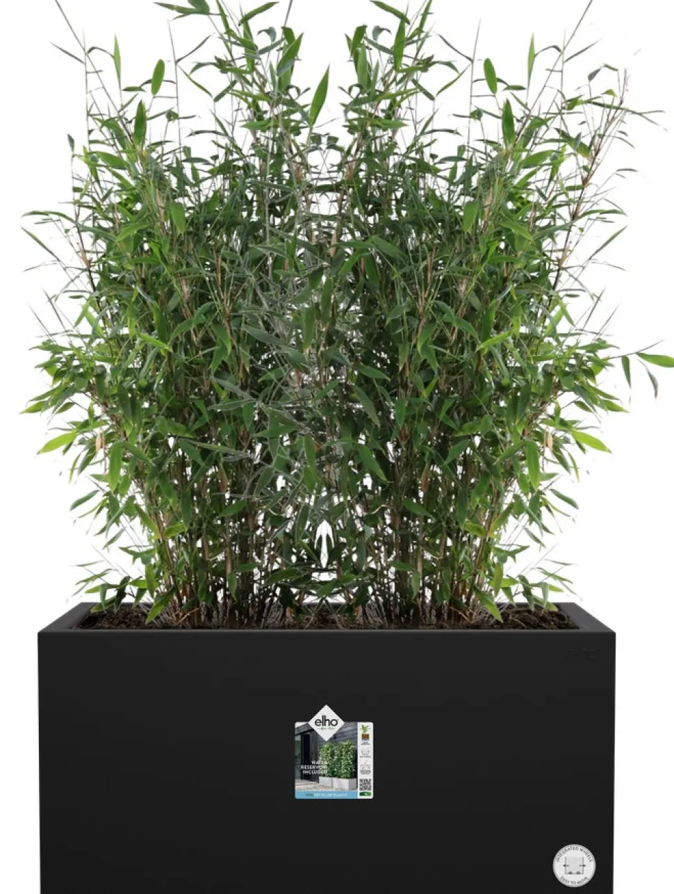 Dieser schöne Design-Pflanzkübel Vivo von Elho ist aus recyceltem Kunststoff hergestellt. Er ist frostbeständig und daher für alle Jahreszeiten im Garten oder auf der Terrasse geeignet. Der schwarze Pflanzkübel besteht aus hochwertigem Kunststoff, der leicht zu reinigen ist, nicht so leicht beschädigt wird und daher einiges aushält. Dank der unsichtbaren Räder lässt sich der Blumentopf leicht bewegen. Die Maße sind 39 x 78 x 37,5 cm.