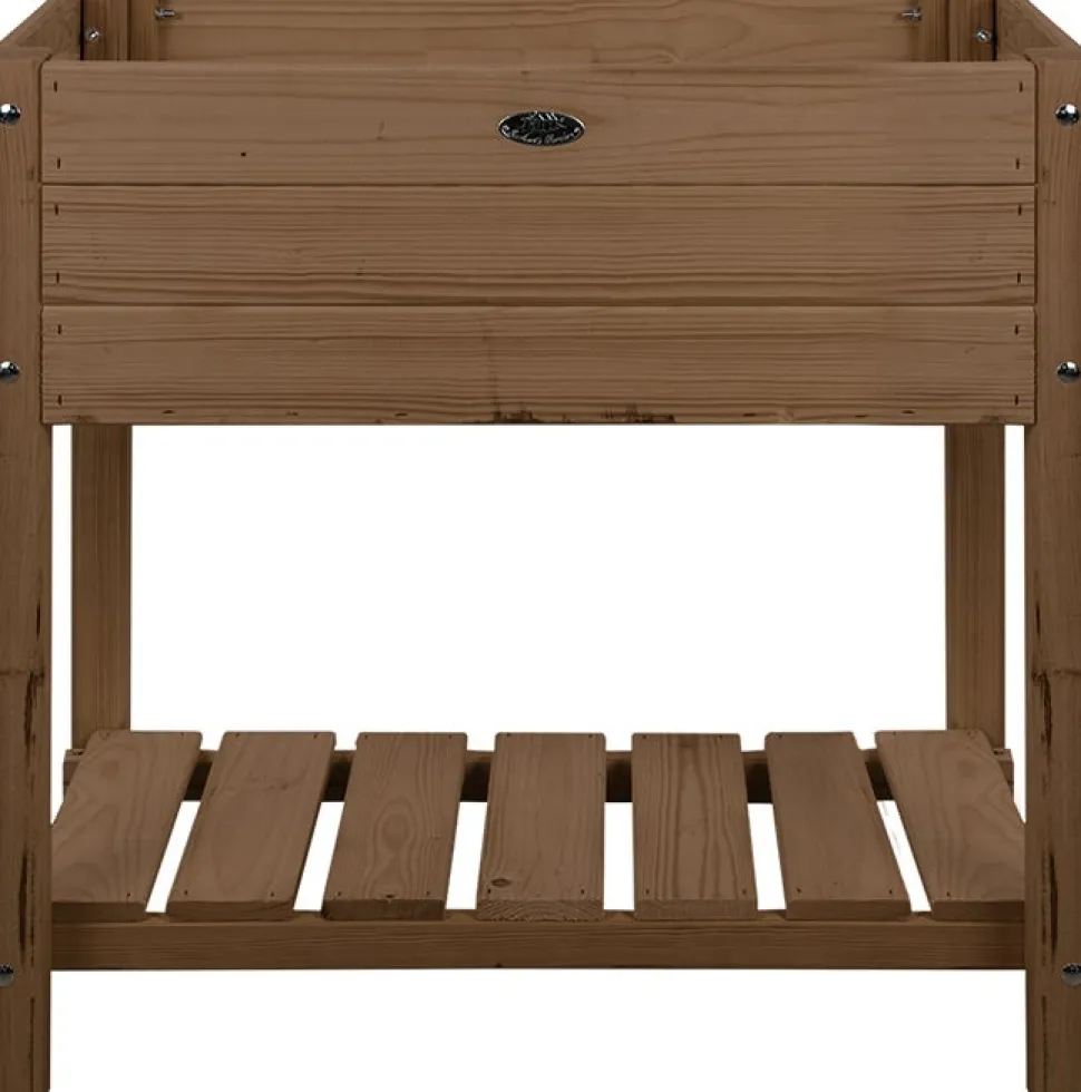 Es wird inklusive Wurzelvlies und extra Ablagefläche für Töpfe, Gartengeräte oder auch Brennholz geliefert. Die Maße sind 78,2 x 40 x 78,6 cm, das Gewicht beträgt etwa 13 kg.